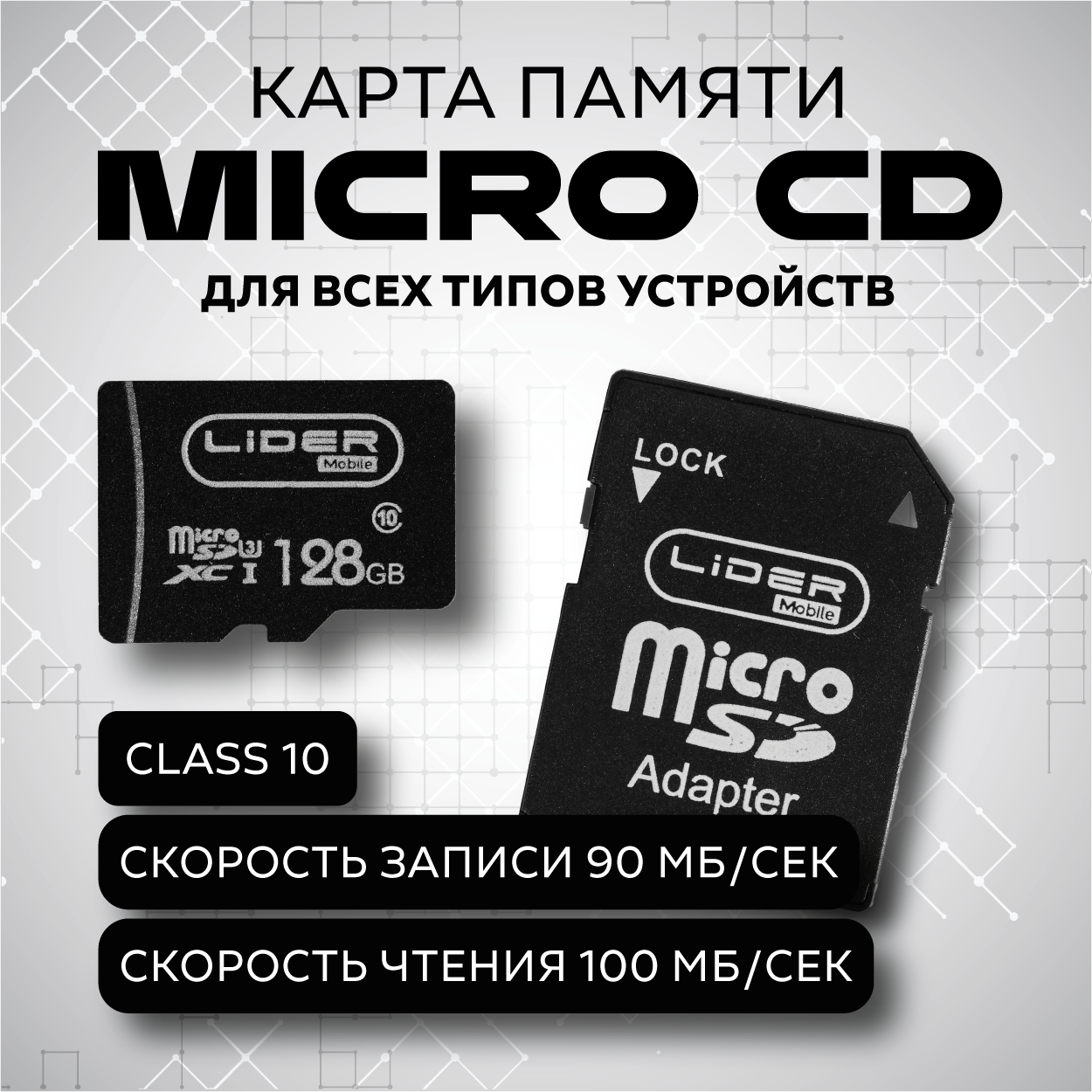 Купить Карта памяти 128 Гб MicroSDHC Card с адаптером, класс 10 для видеорегистратора, камеры наблюдения, фотоаппарата
