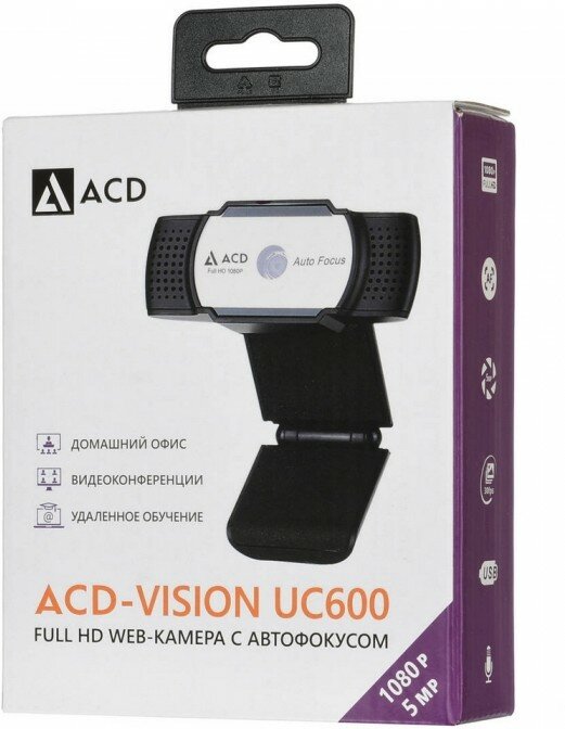 Купить WEB Камера ACD-Vision UC600 Black Edition Cmos 5МПикс, 2592x1944p, 30к/с, автофокус, микрофон встр.,