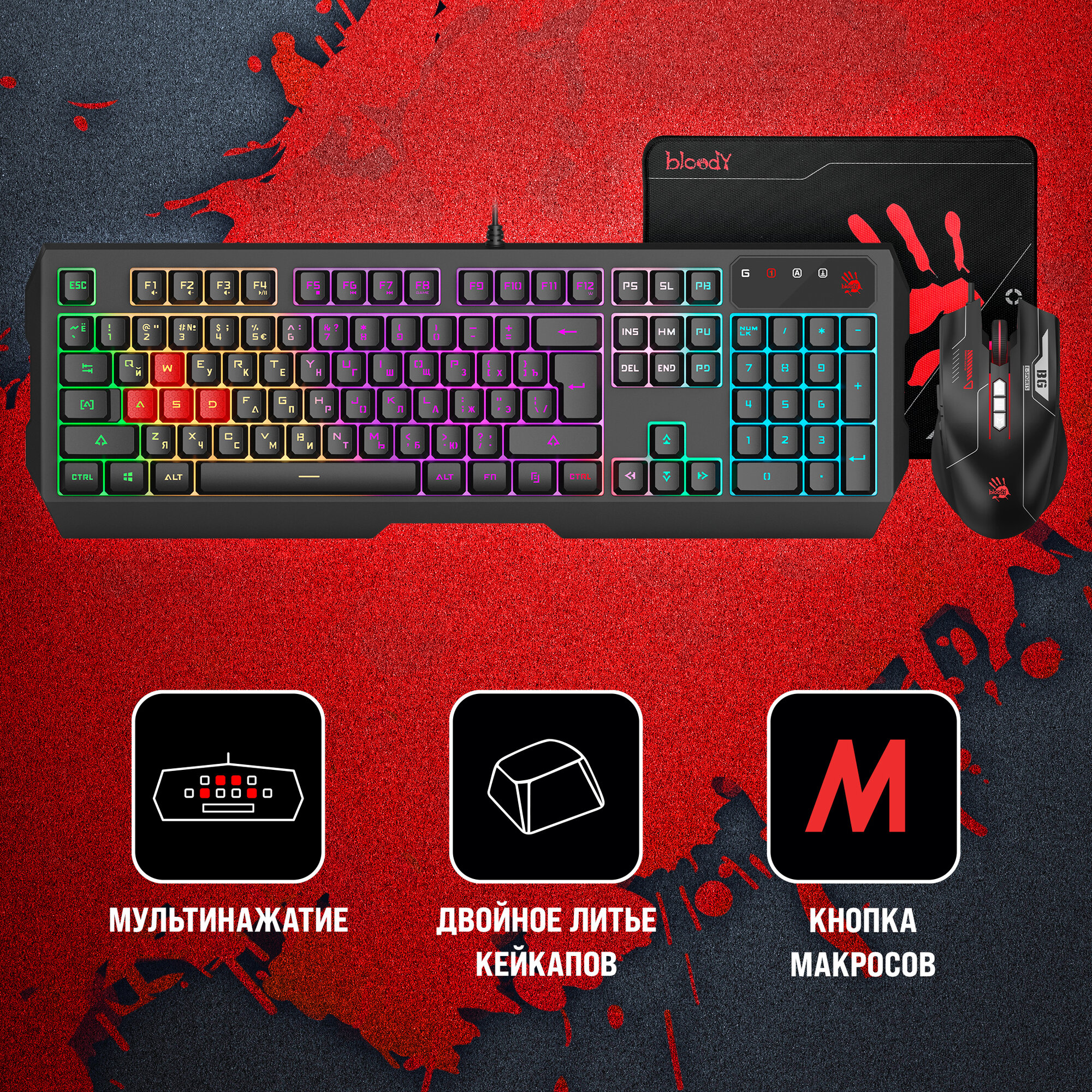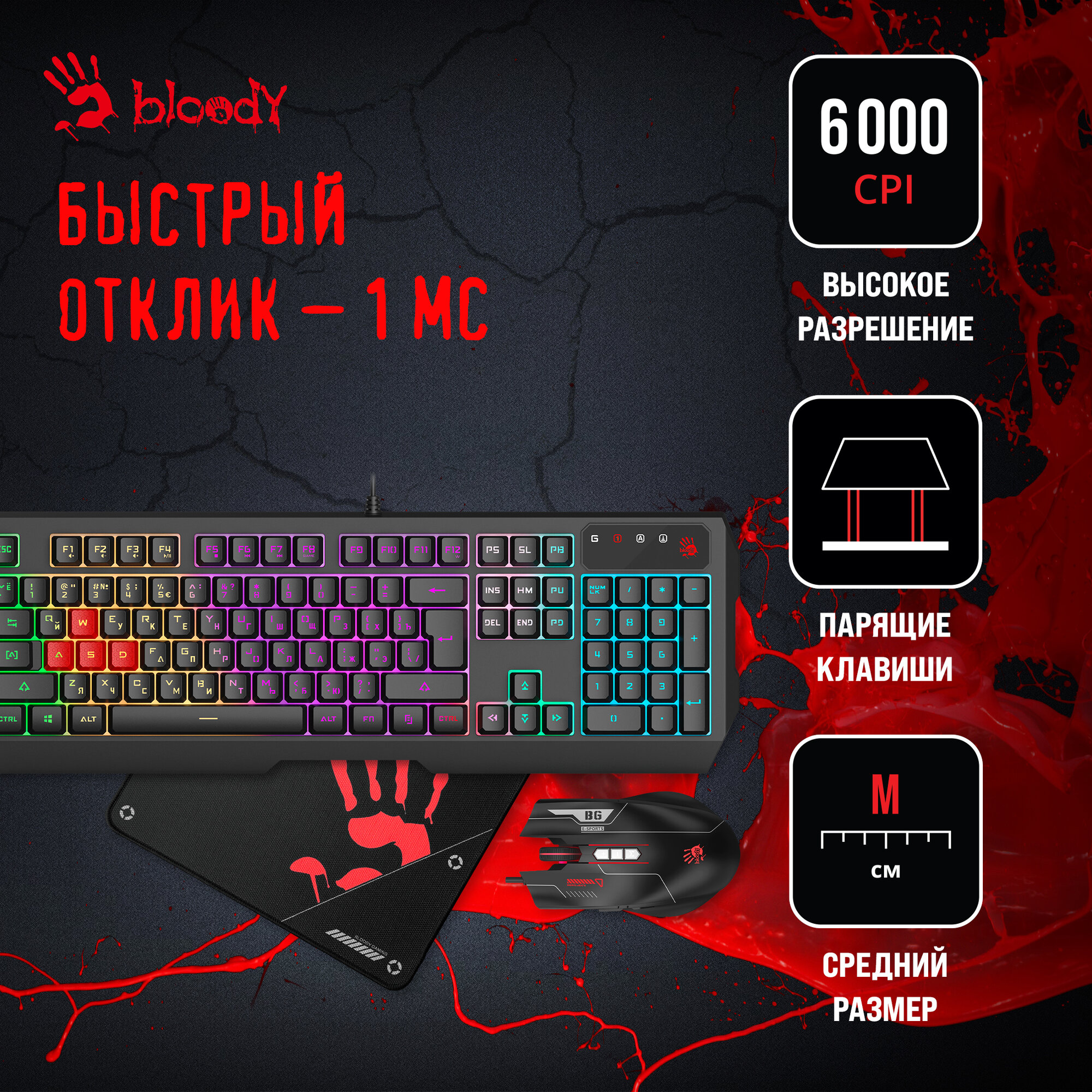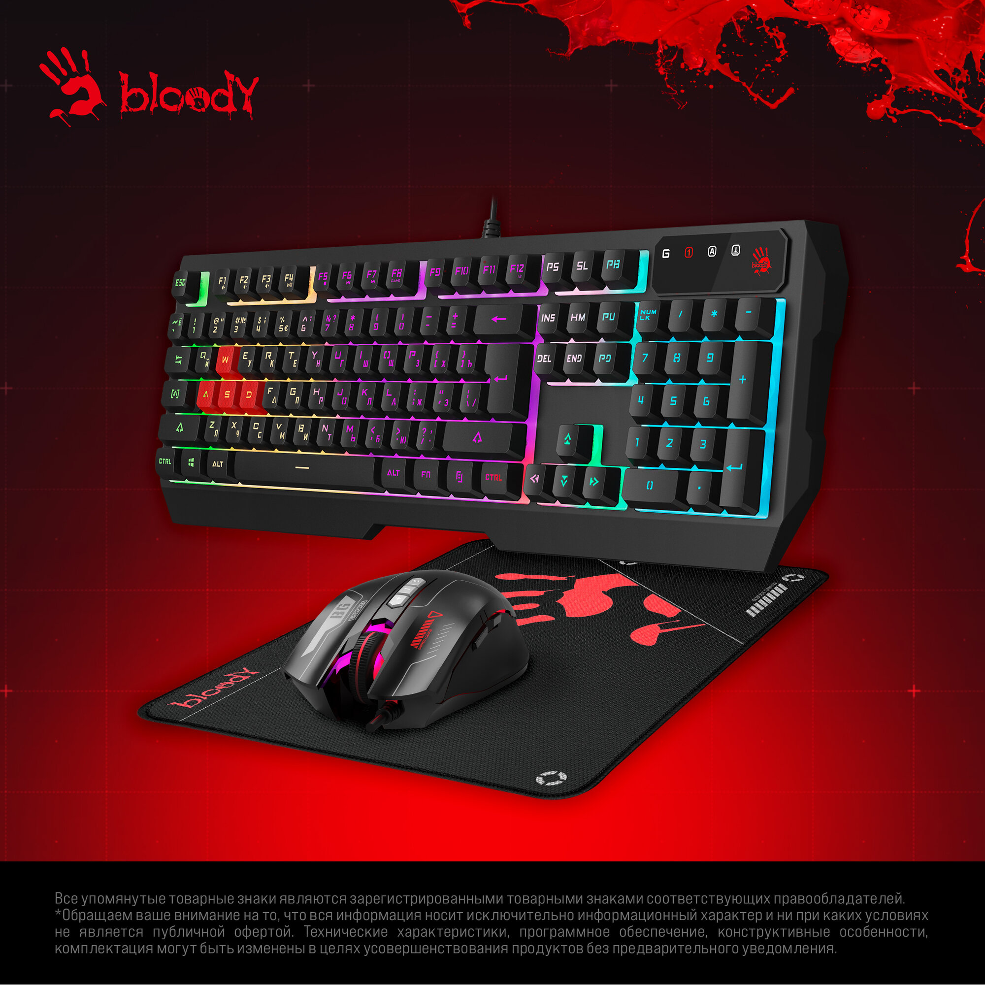 Комплект (клавиатура+мышь) A4TECH Bloody B1700, USB, проводной, черный [b1700 (b140n + es7 + bp-50m)]