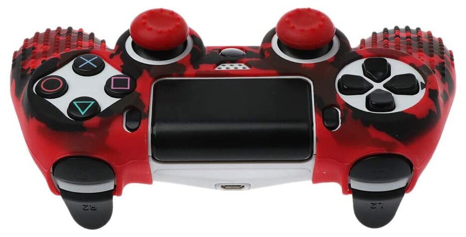 Купить Защитный силиконовый чехол для геймпада PS4 (матовая накладка для контроллера ПС4) с рисунком и массажными пупырками, красно-черный