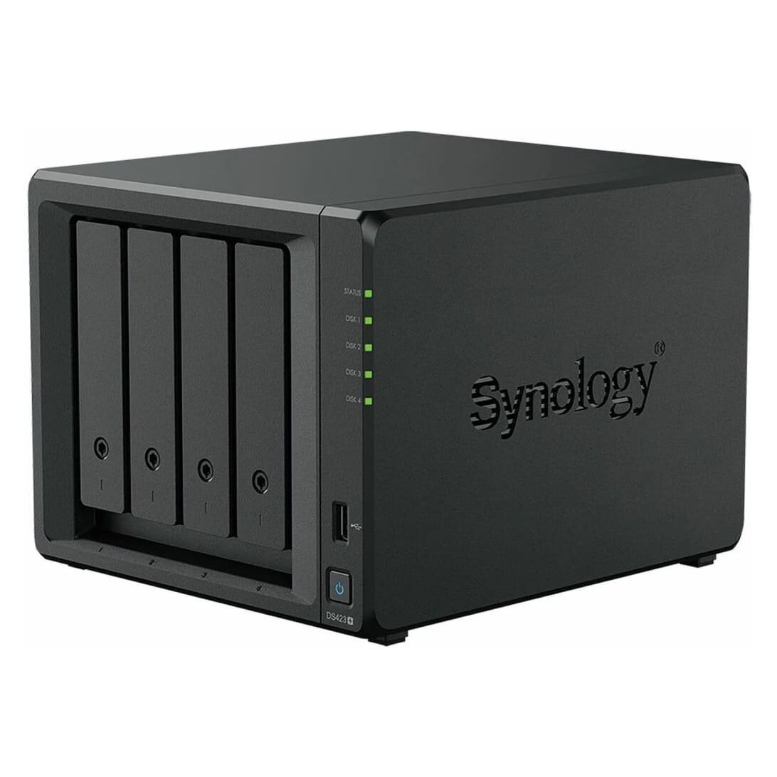 Сетевое хранилище данных Synology DS423+ QC 2,0GhzCPU/2GB(6)/RAID0,1,10,5,6/upto 4HP HDD SATA(3.5', 2.5')/2xUSB3.2/2xGbE/iSCSI/2xIPcam(up to 40)/1xPS/1YW