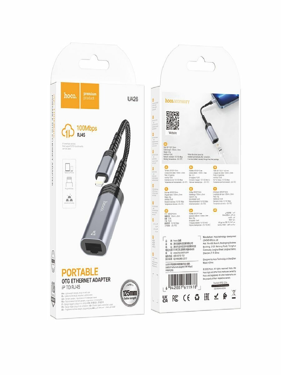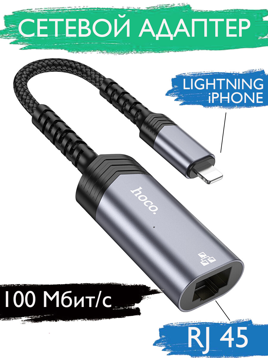 Адаптер, внешняя сетевая карта Hoco UA26 Lightning to RJ45