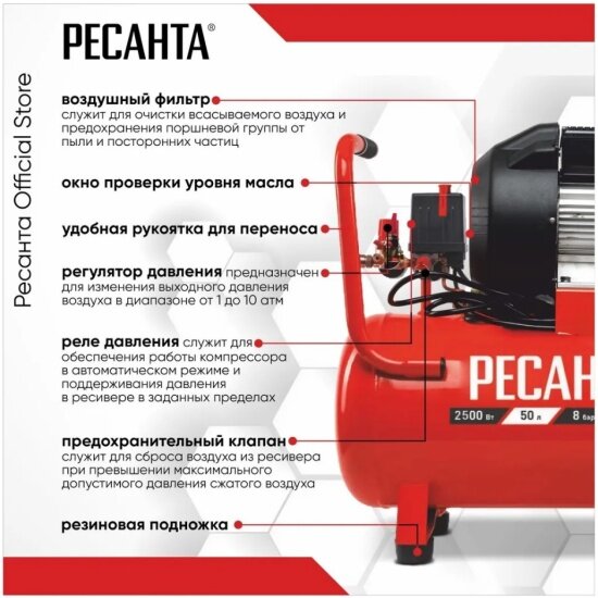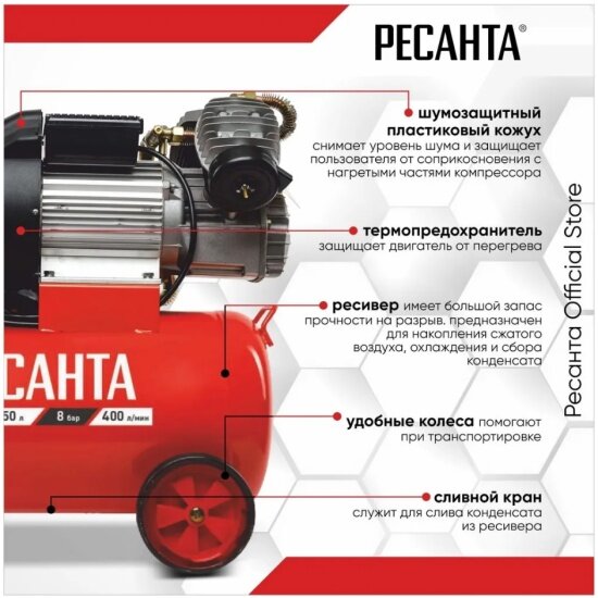 Компрессор масляный Ресанта КП-50/400М масляный red/black интересное: