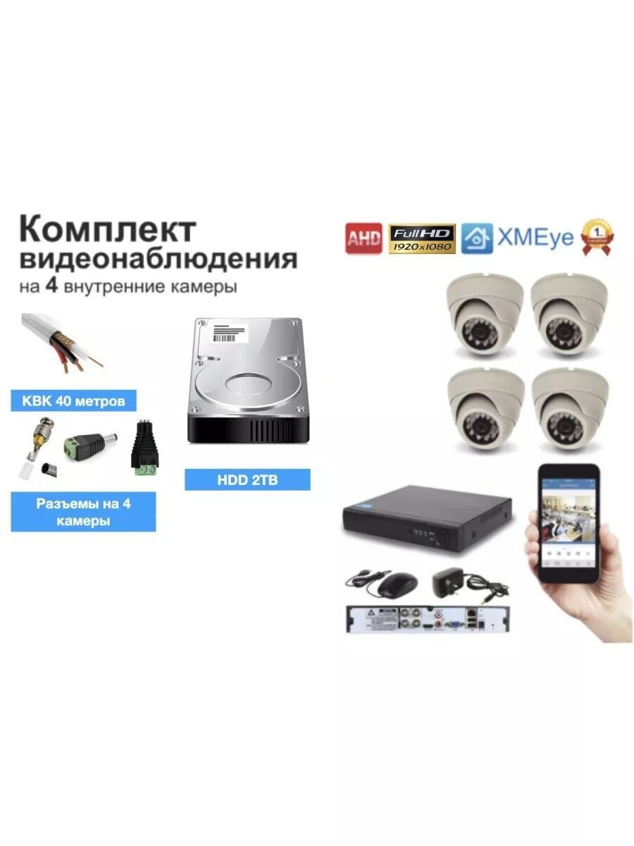 Полный внутренний готовый комплект на 4 камеры Full HD интересное:
