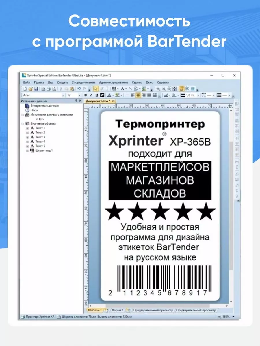 "XP-365" - термопринтер с USB-интерфейсом + рулон с термоэтикетками 75х120 мм интересное: