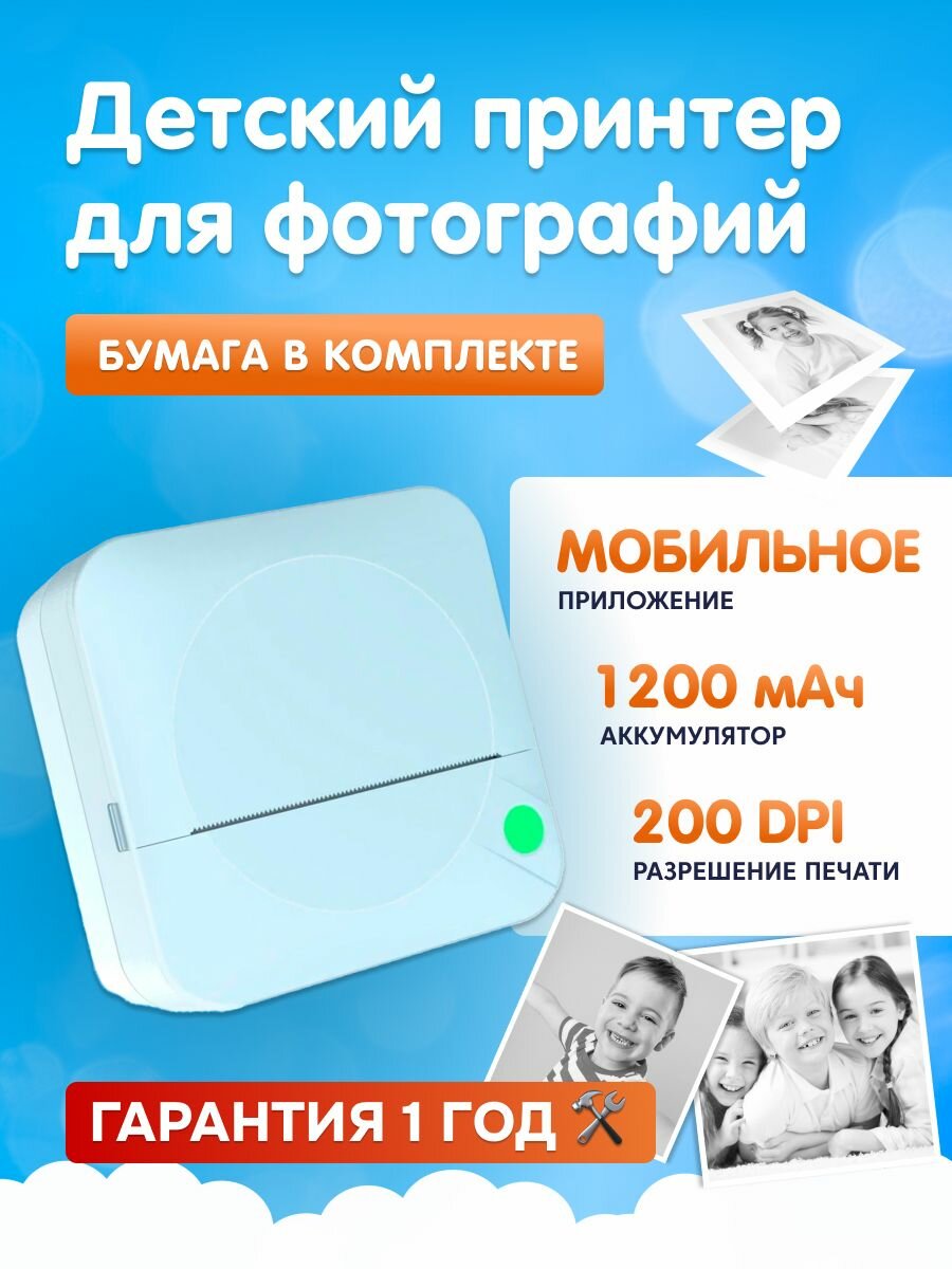 Портативный мини принтер для телефона Kid Joy, 200DPI, Bluetooth 5.1, (C17) Blue интересное: