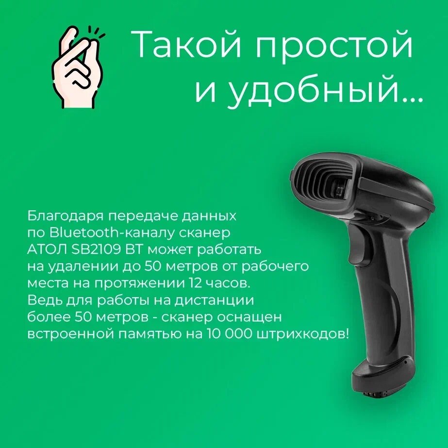 Сканер штрихкода беспроводной АТОЛ SB2109 BT (rev.3) (2D, серый, USB, c подставкой, упаковка 1 шт.) интересное:
