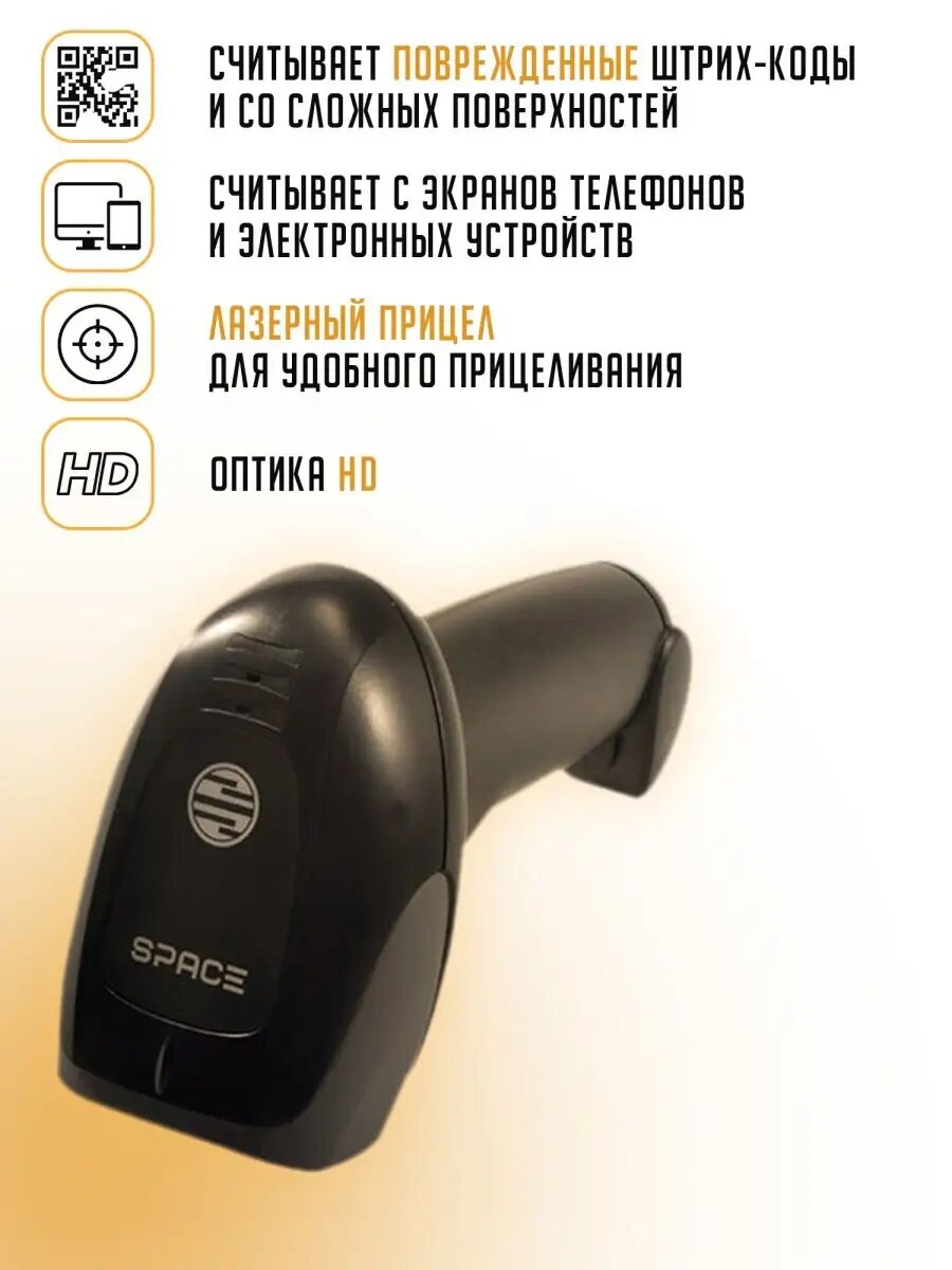 Беспроводной сканер штрих-кода 2D SPACE LITE-2D-BT ручной, USB (черный) интересное:
