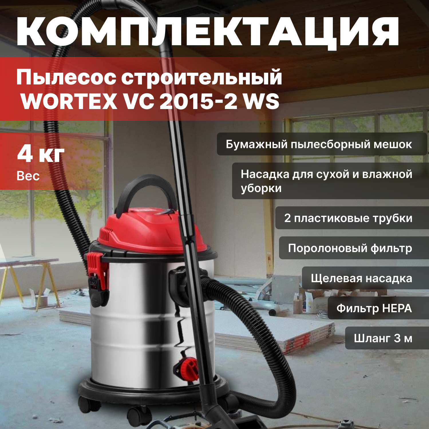 Пылесос строительный WORTEX VC 2015-2 WS (1329407)
