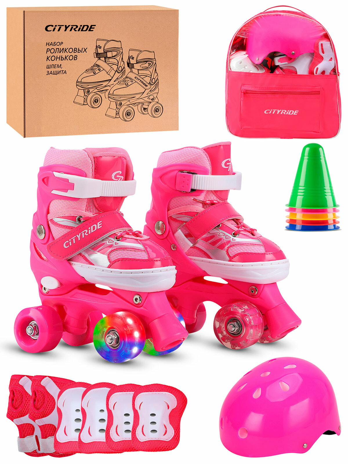 Набор детские роликовые коньки и защита, квады, ТМ "CITY-RIDE", PVC колеса, размер S (29-33), раздвижные, JB0210519