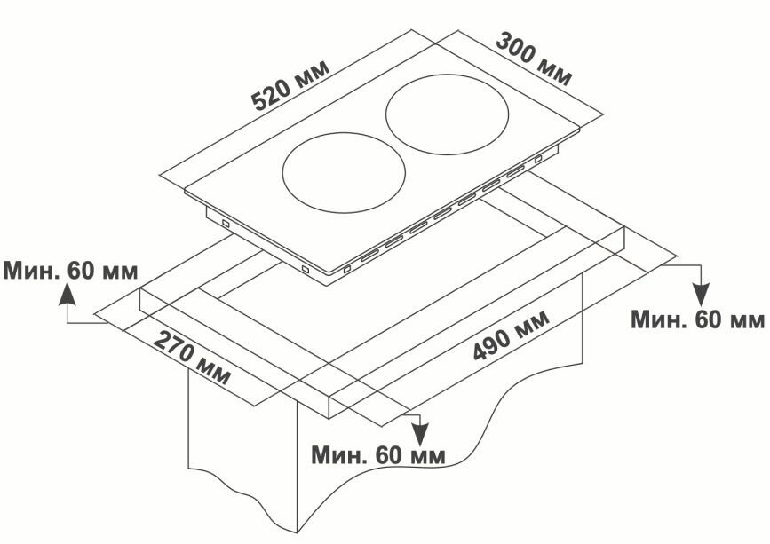 | Общее количество конфорок | 2 |