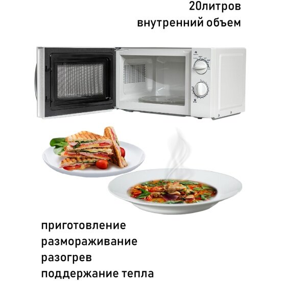 Микроволновая печь FS MWO D 20.10 WH, Сенсорное управление, 6 программ для приготовления, антипригарная эмаль, таймер, блокировка от детей.