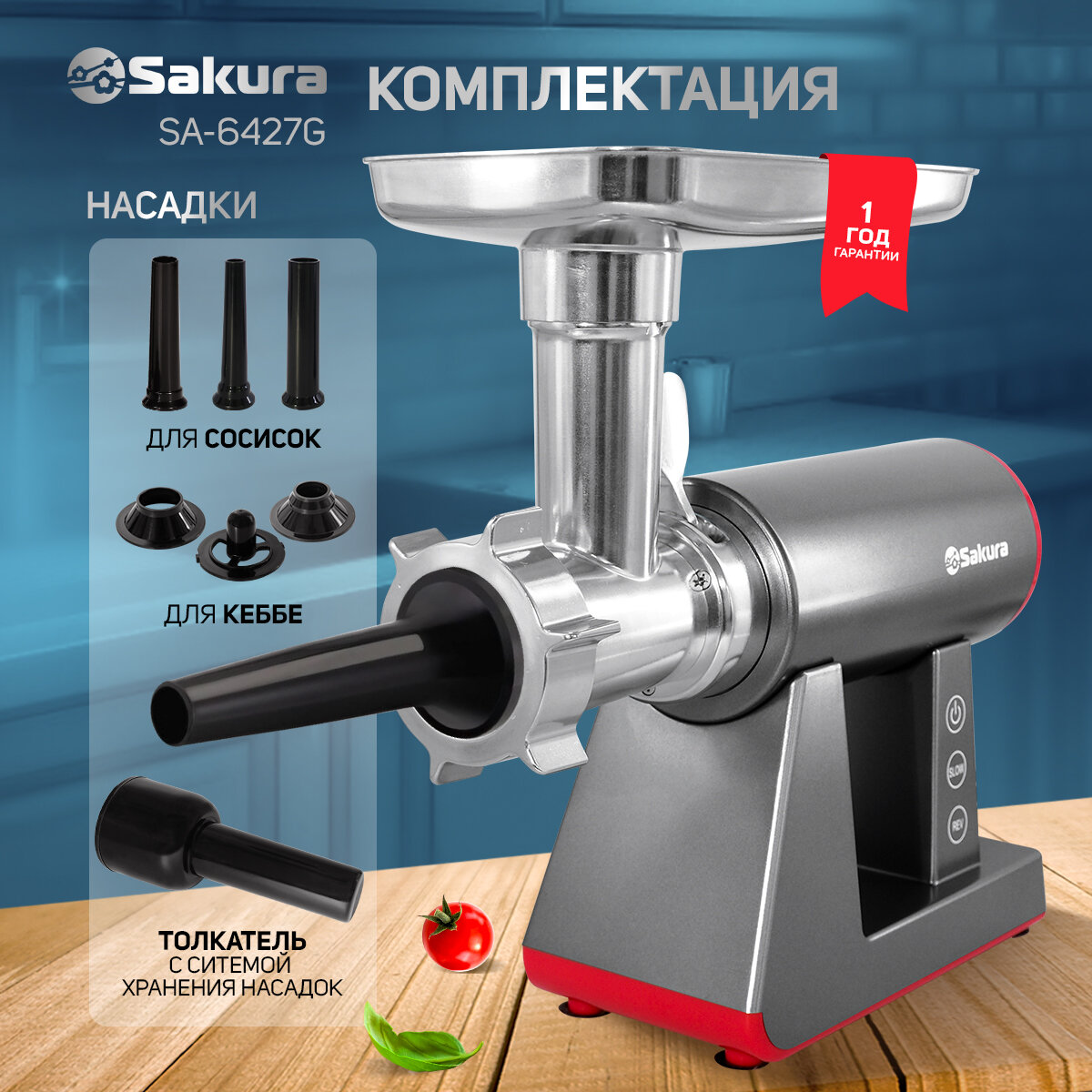 Мясорубка Sakura SA-6427G Premium 2400Вт, реверс, 2 скорости, комплект насадок интересное: