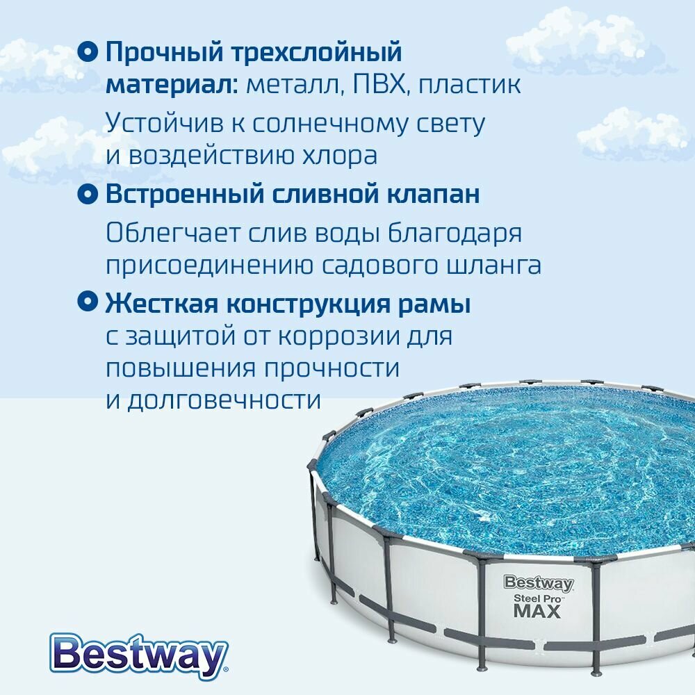 Каркасный бассейн Bestway 5.49 х 122 см +фильтр-насос, лестн, покрыв, дозат интересное: