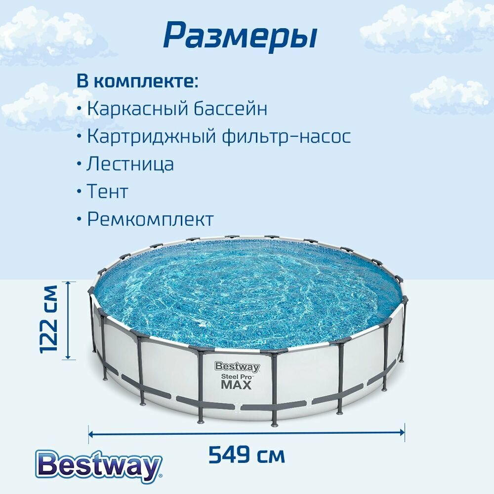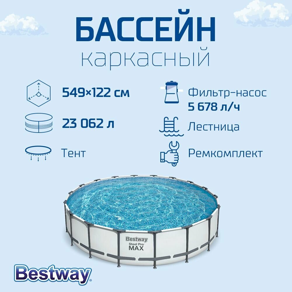 Bestway Бассейн каркасный Steel Pro Max, 549 х 122 см, фильтр-насос, лестница, тент, 56462 .