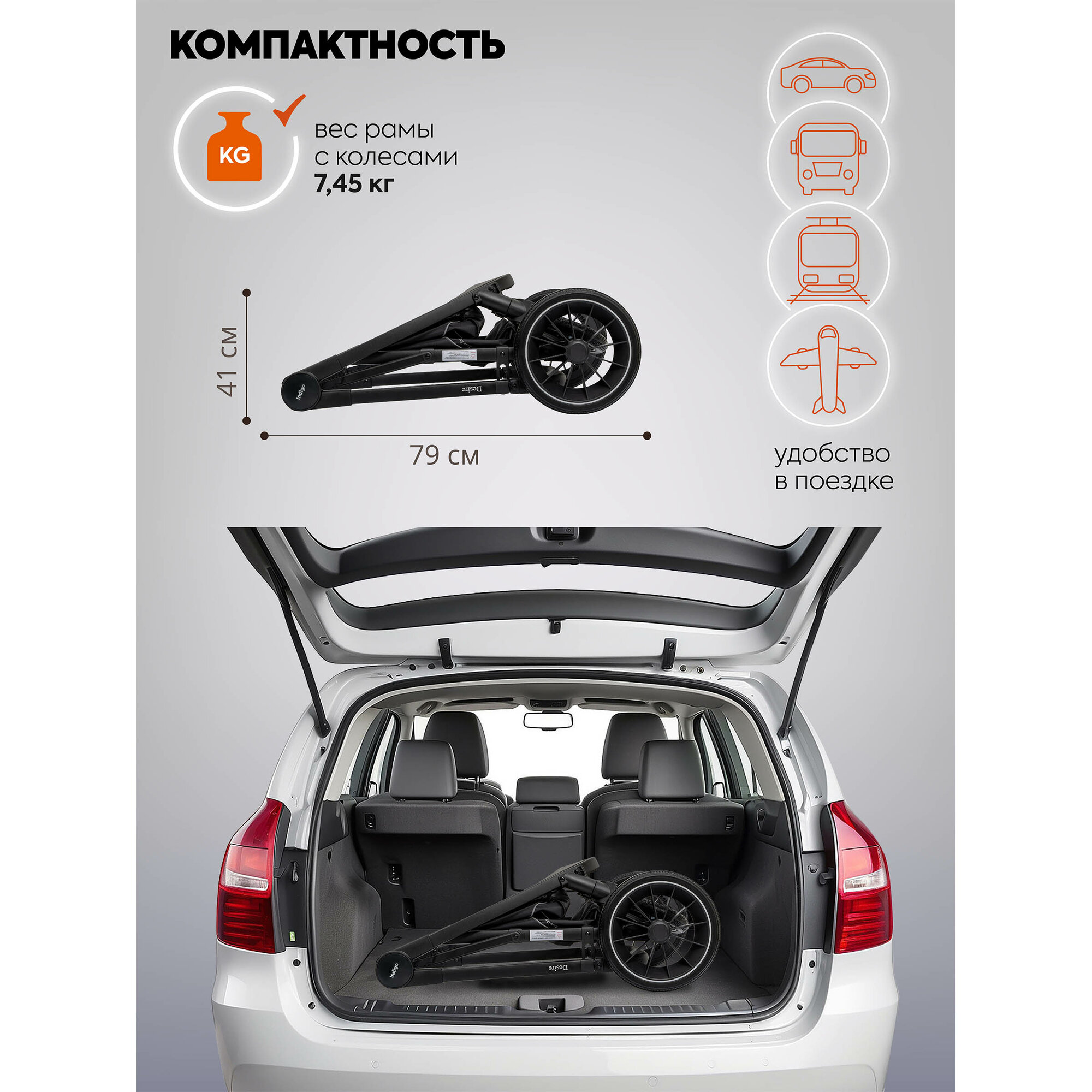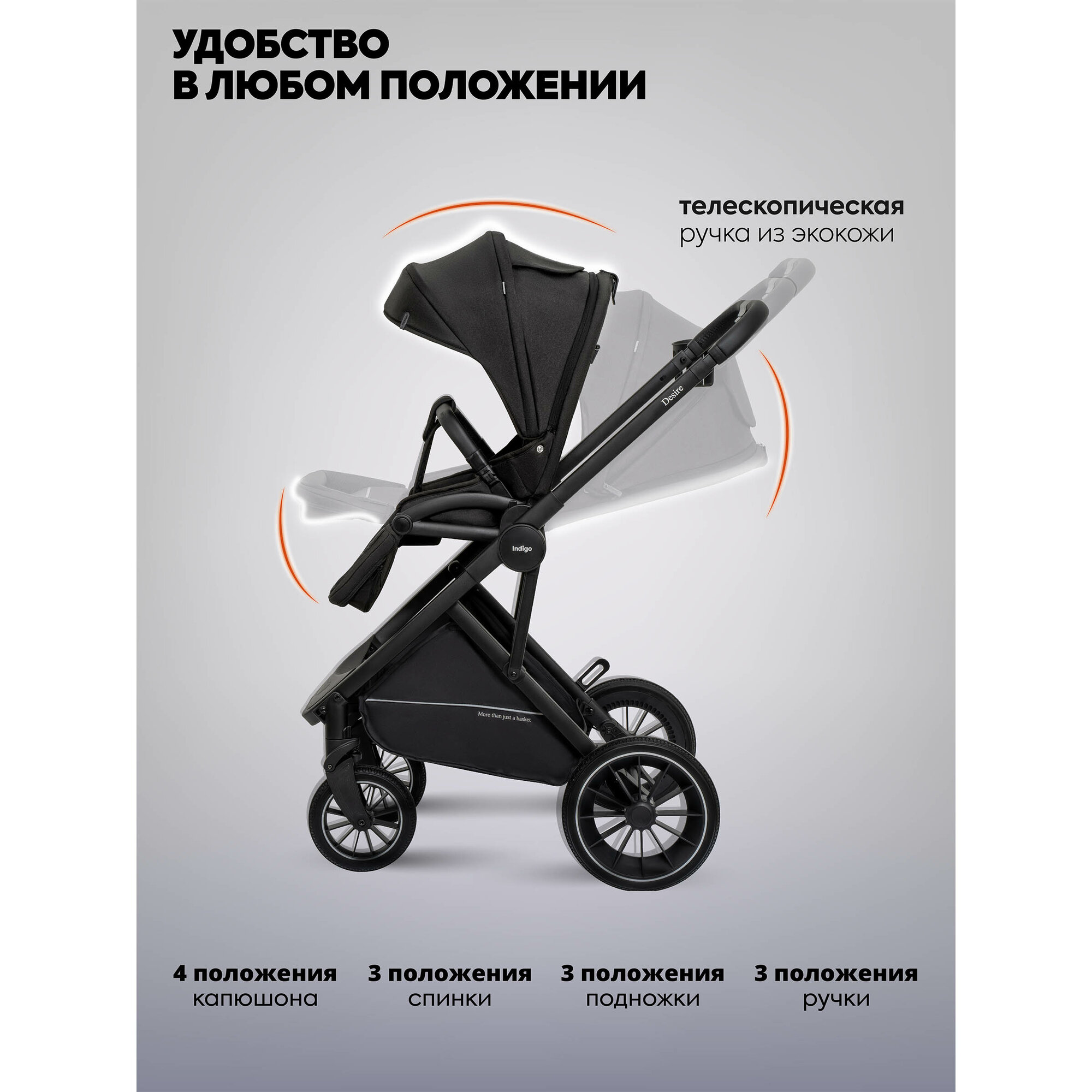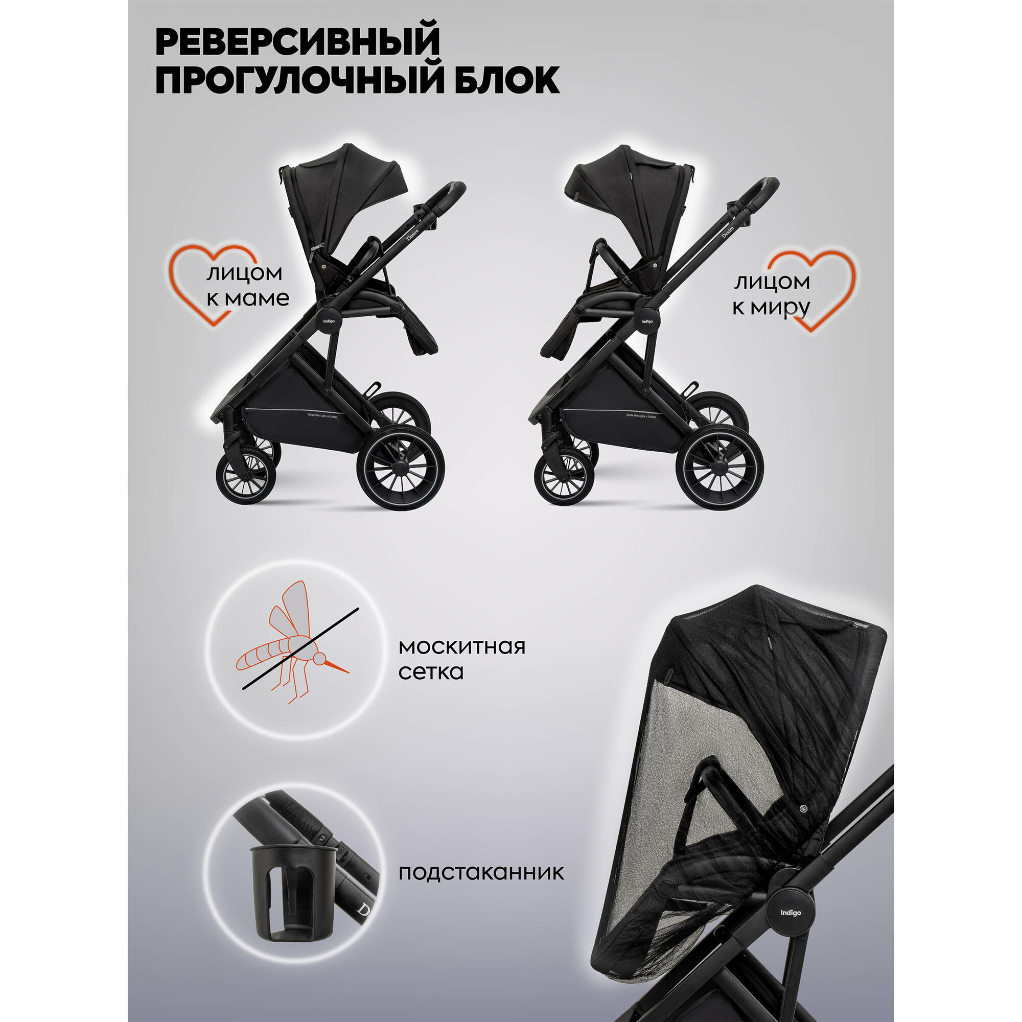 Коляска люлька универсальная INDIGO DESIRE 3в1 прогулочная всесезонная, графит