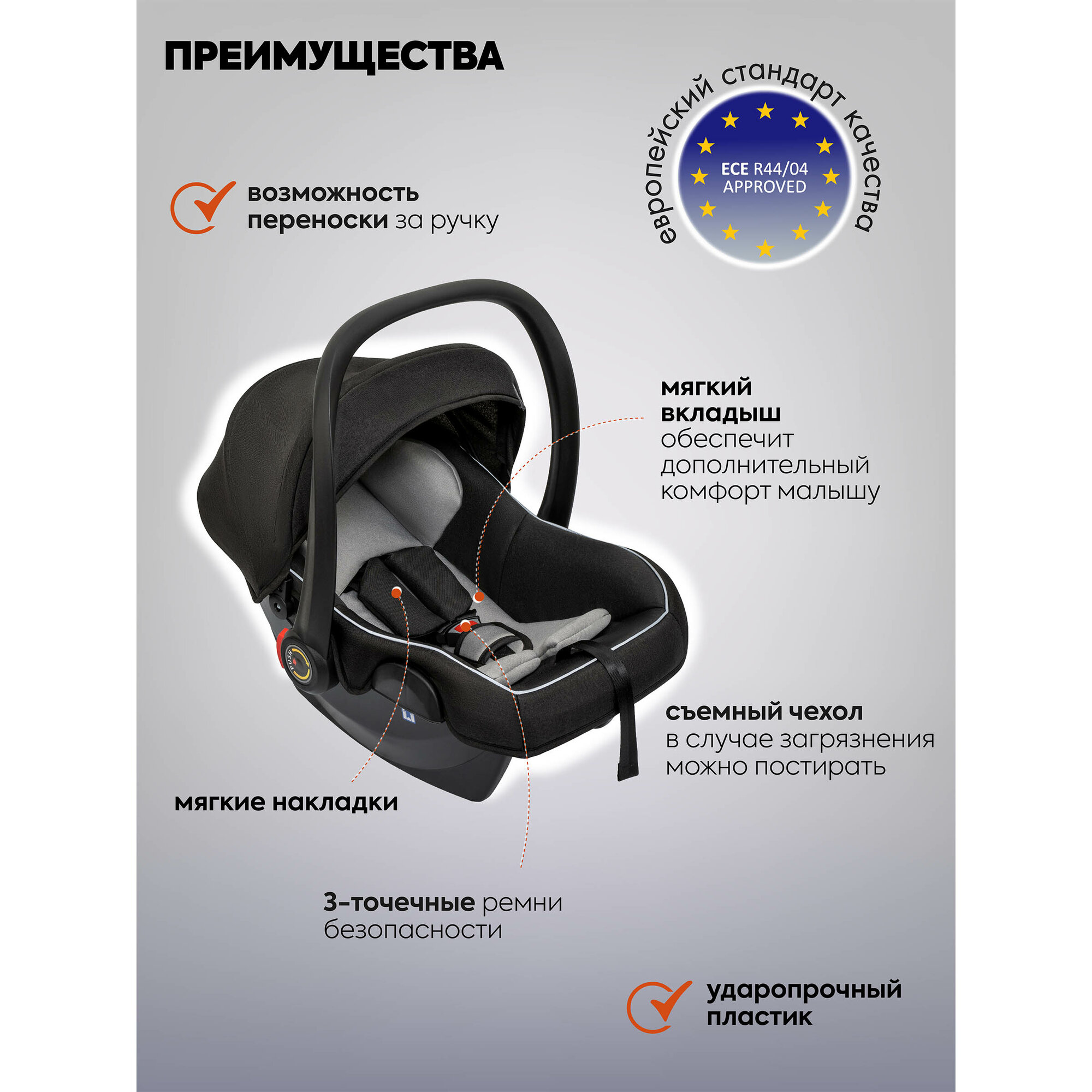 | Особенности | бампер, горизонтальное положение спинки, мягкие накладки на ремни, регулировка высоты подножки, регулировка наклона спинки, ремни безопасности, смотровое окно, съемный бампер |