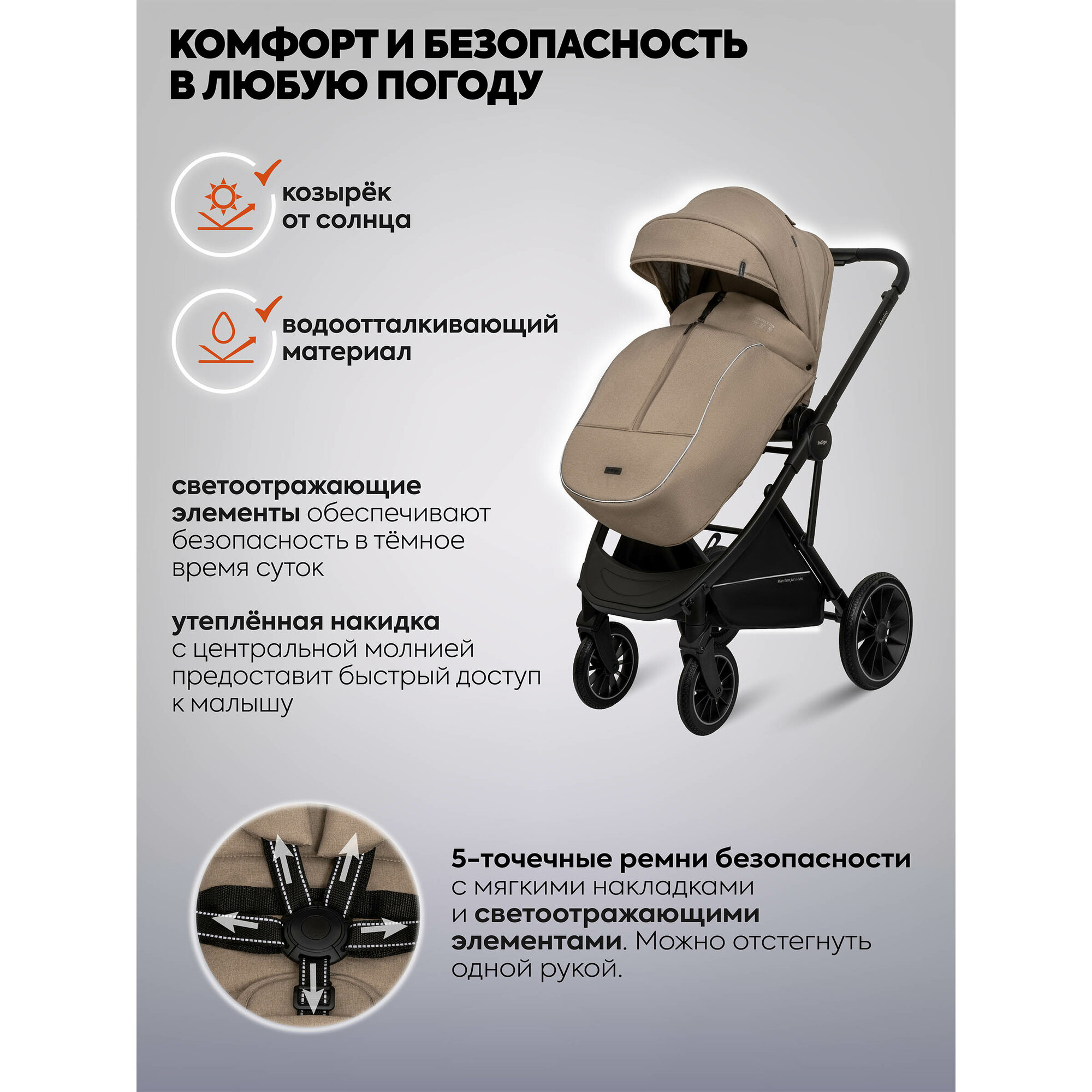СохранитьКоляска 3в1 INDIGO DESIRE универсальная, всесезонная с автолюлькой, бежевый интересное: