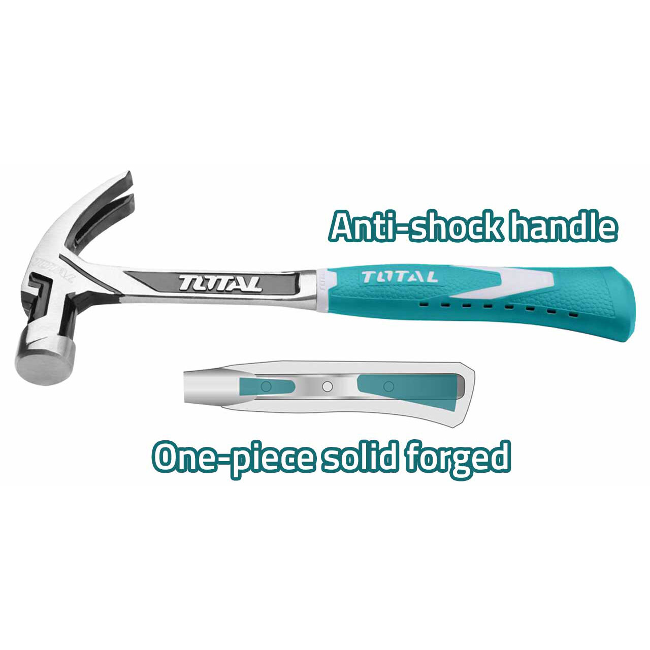 Молоток-гвоздодер с цельнометаллической антивибрационной ручкой 450 г Total