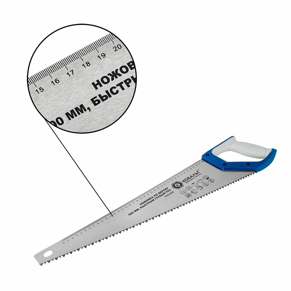 Купить Ножовка по дереву кобальт 500 мм, шаг 7,5 мм / 3,5 TPI, закаленный зуб, 2D-заточка, быстрый грубый рез, 2-х комп. рукоятка