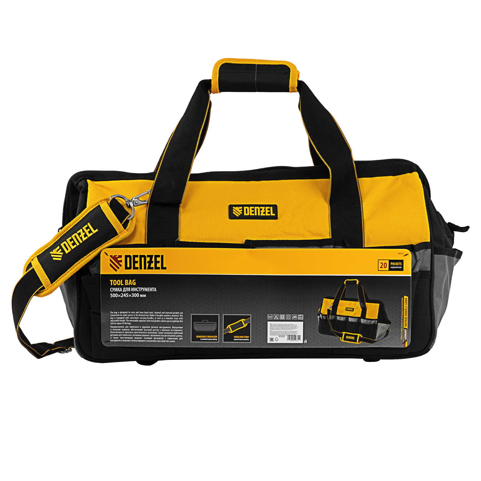 Сумка для инструмента Denzel 500х245х300 мм, 20 карман., съемный органайз. 10 карман., наплеч. рем. 90293