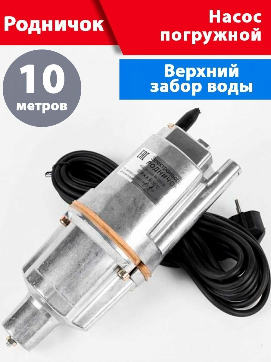 Насос Родничок погружной, верхний забор (10 м, медная обмотка, термозащита) интересное: