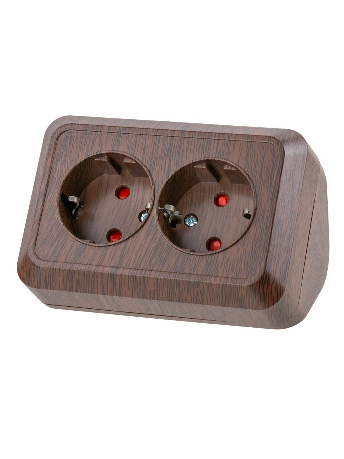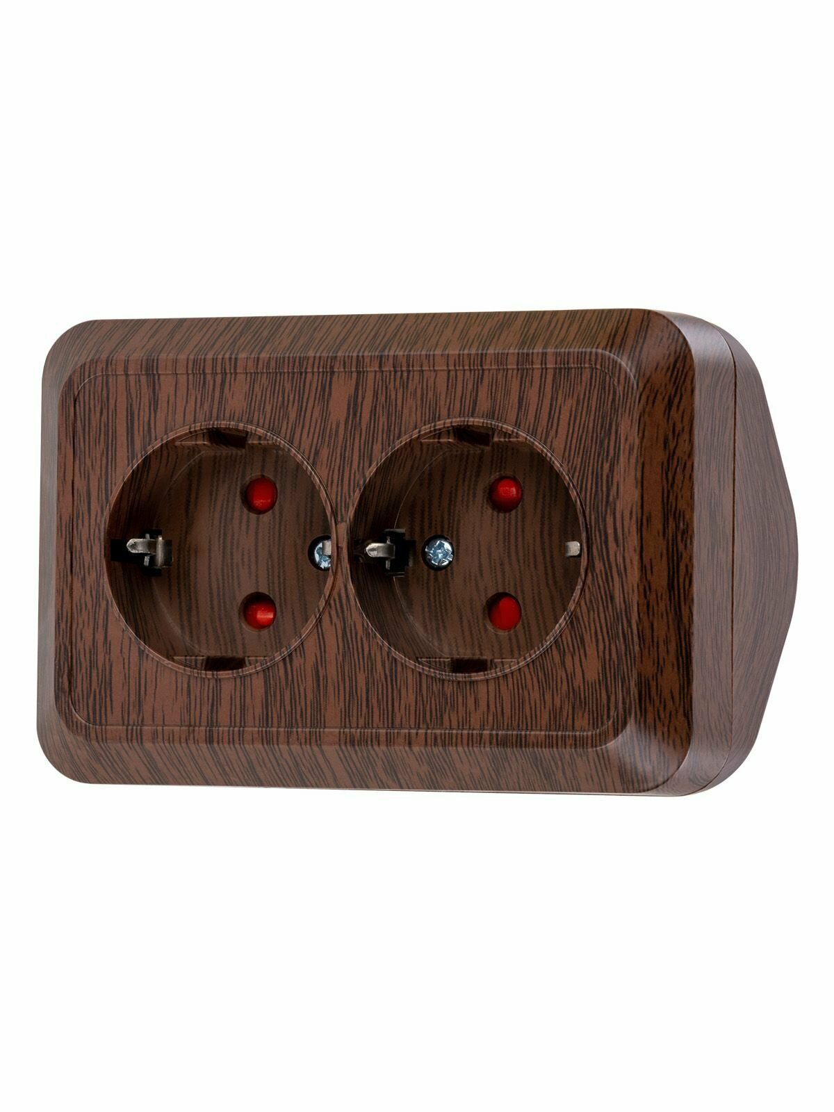 Розетка угловая двойная 2П+3 открытой установки с з/ш IP20 250В 16А сосна "Ладога" TDM