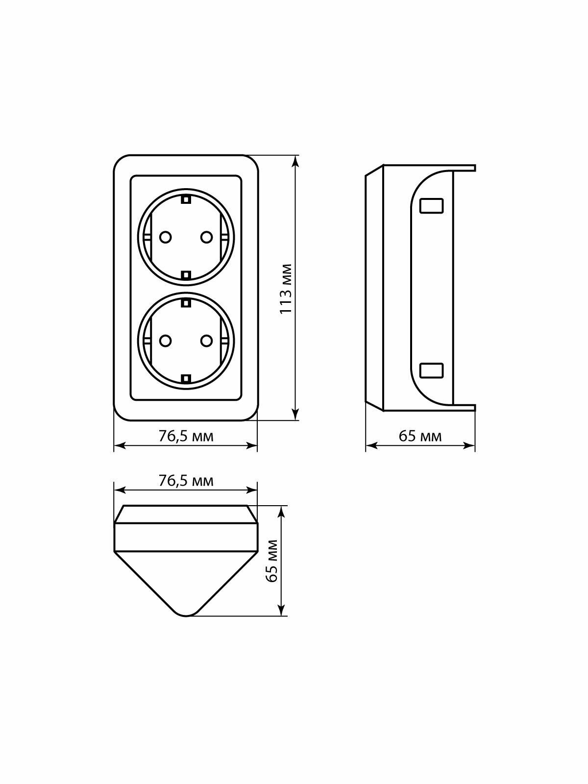 СохранитьРозетка угловая двойная 2П+3 открытой установки с з/ш IP20 250В 16А бук "Ладога" TDM интересное: