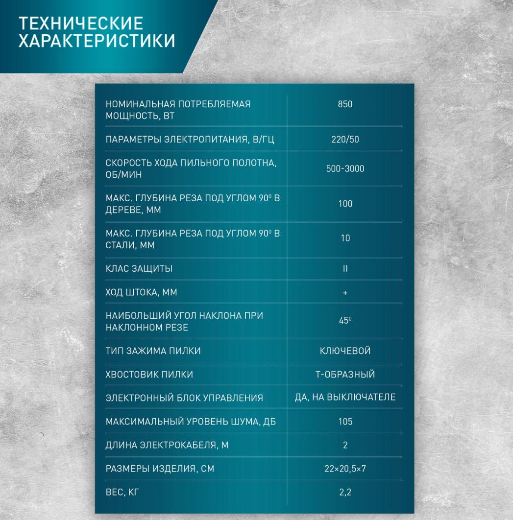 | Частота движения пилки (макс.) | 3000 ходов/мин |