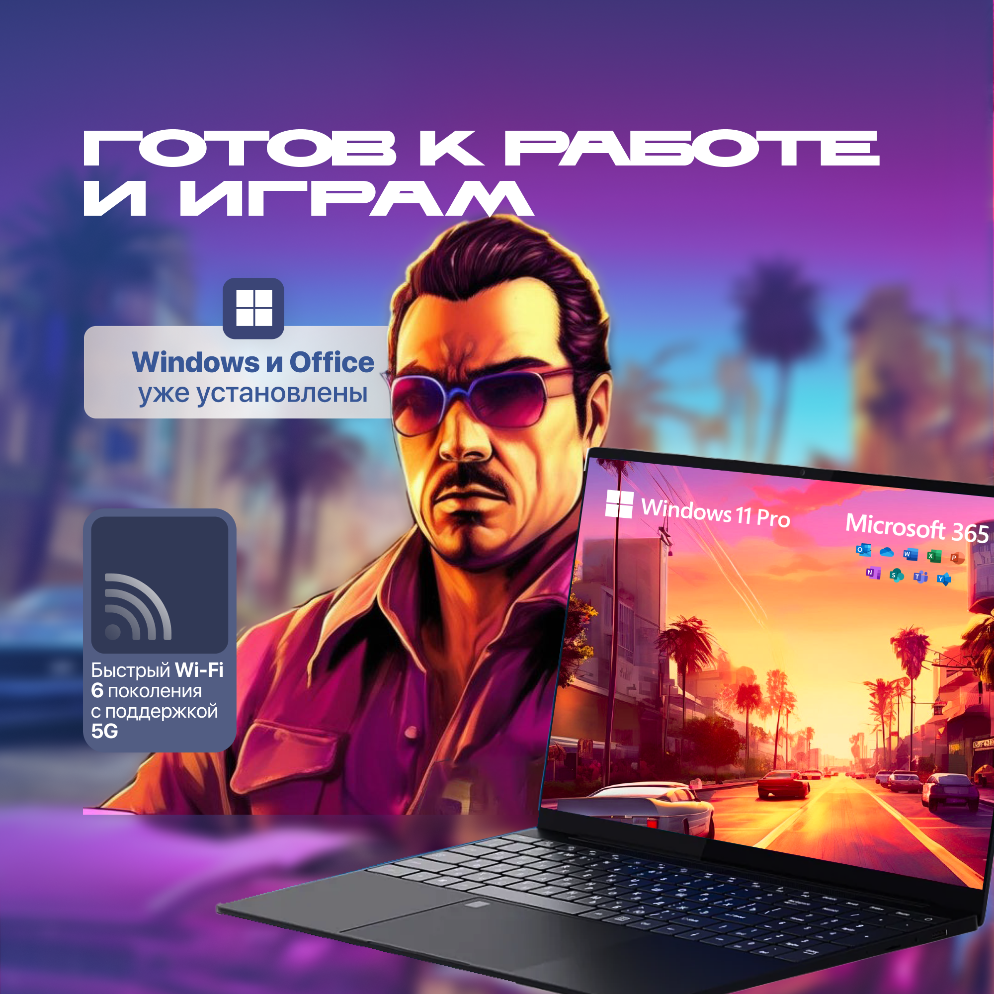 15.6 Игровой ноутбук Intel Celeron N5095 (2.00 GHz, 4 ядра), RAM 16 GB, SSD 512 GB, Intel UHD Graphics, Windows 10 Pro