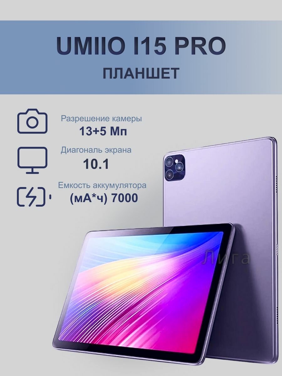 Планшет Umiio I15 pro, 6 ГБ/128 ГБ, Android 12, емкость аккумулятора 7000 мАч, Фиолетовый цвет интересное: