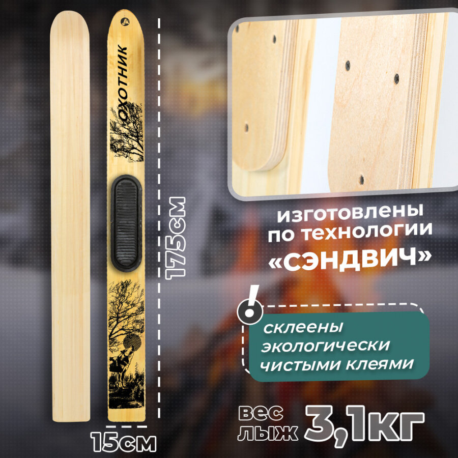 СохранитьЛыжи охотничьи деревянные Маяк охотник 175 х 15 см с пластиковыми накладками и амортизаторами интересное: