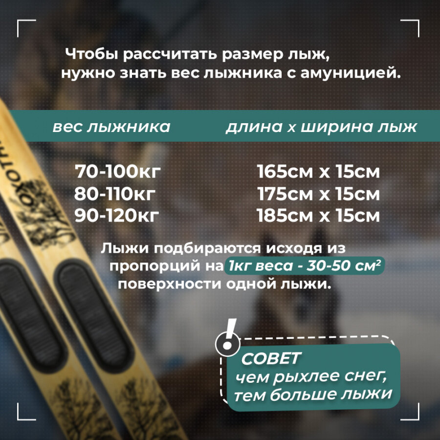 | Дополнительная информация | Промысловые лыжи незаменимы для зимней охоты и подледной рыбалки |