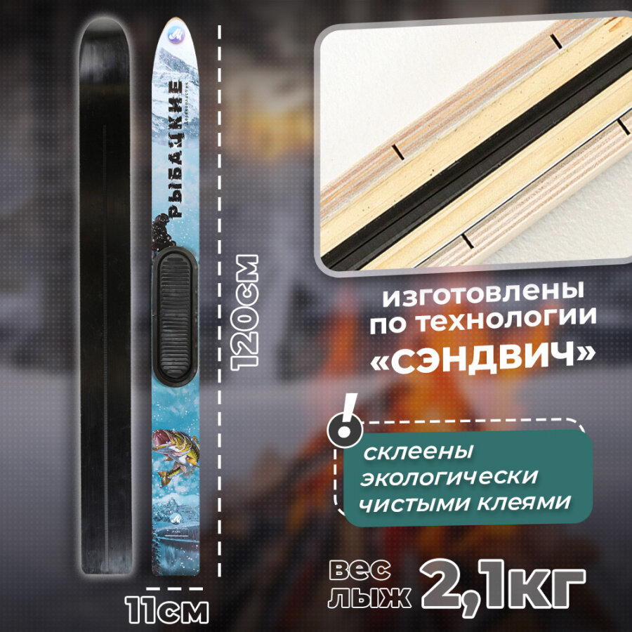 Лыжи охотничьи пластиковые Маяк рыбацкие 120 х 11 см с пластиковыми накладками и амортизаторами (дерево-пластик) интересное: