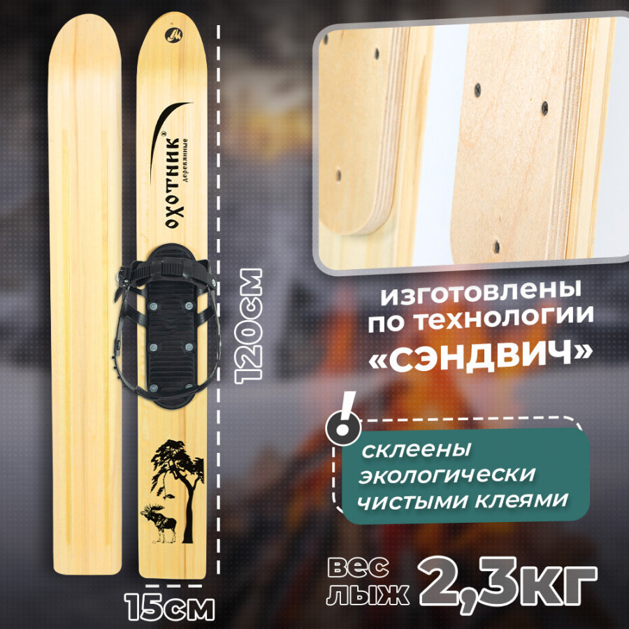 Лыжи охотничьи деревянные Охотник 120 см с креплением брезент