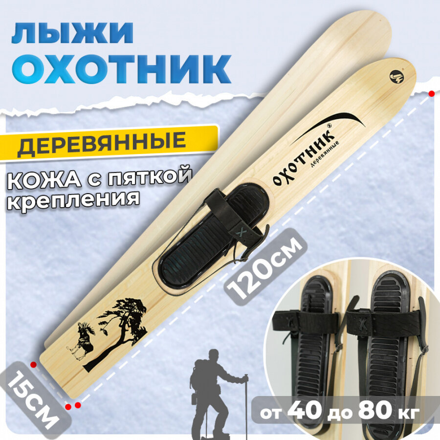 Купить Лыжи охотничьи деревянные Маяк Охотник 120 х 15 см с креплением кожа с пяткой
