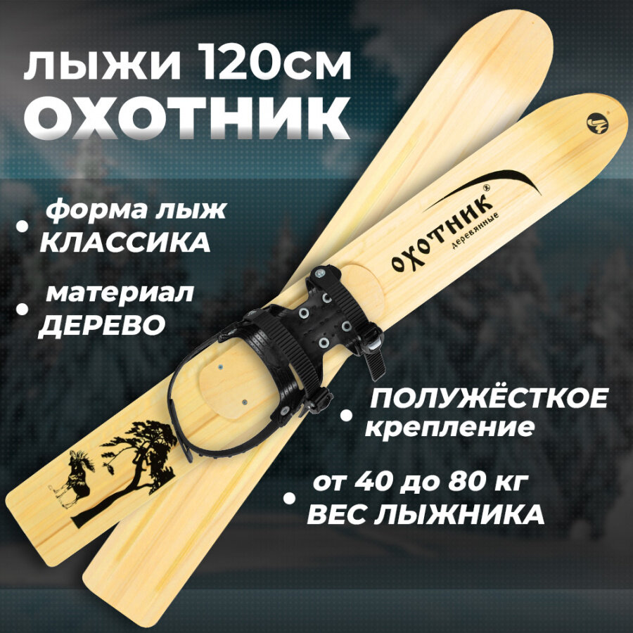 Купить Лыжи охотничьи деревянные Маяк Охотник 120 х 15 см с полужестким креплением