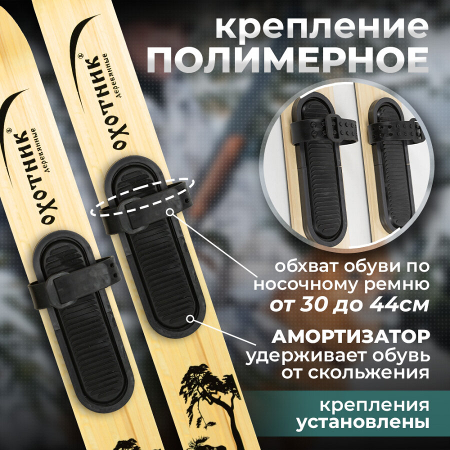 Лыжи охотничьи деревянные Охотник 120 см с креплением брезент