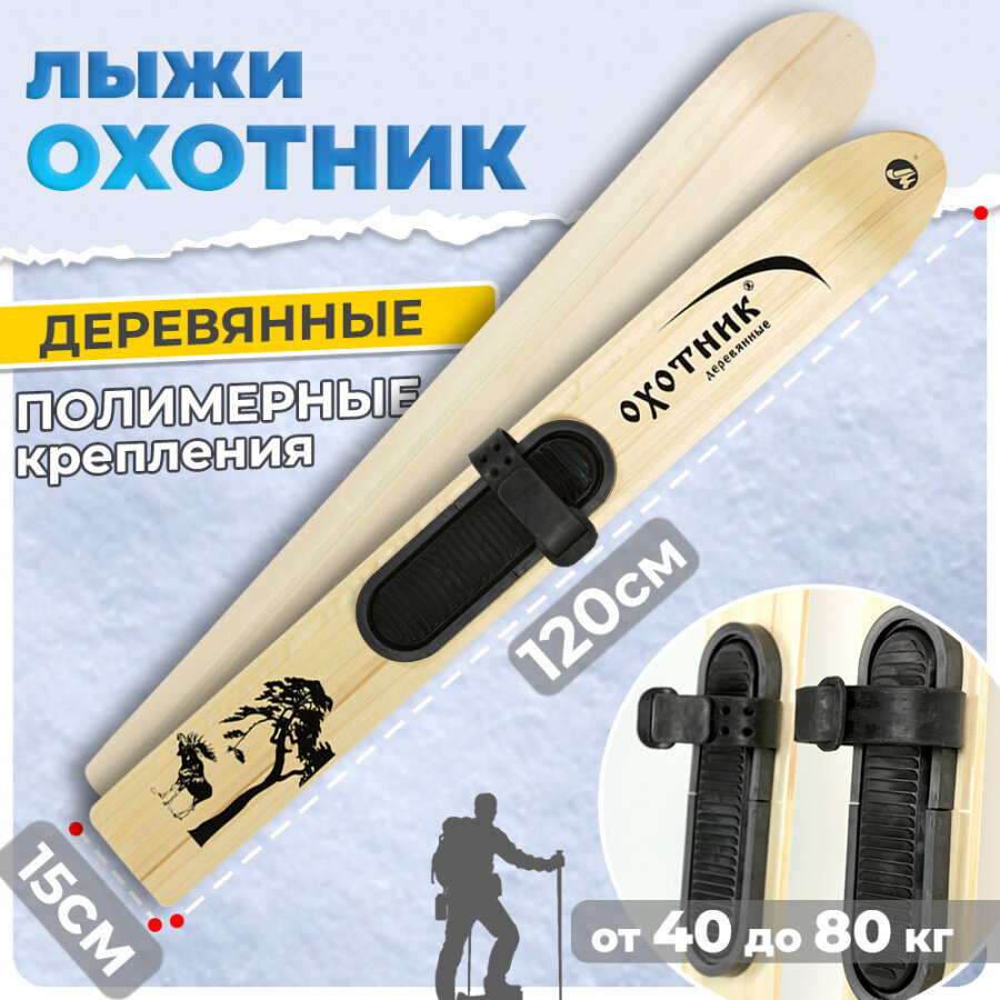 Лыжи охотничьи деревянные Маяк Охотник 120 х 15 см с полужестким креплением