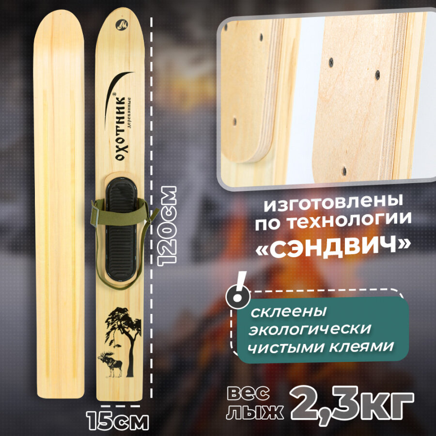 Лыжи охотничьи деревянные Охотник 120 см с креплением брезент