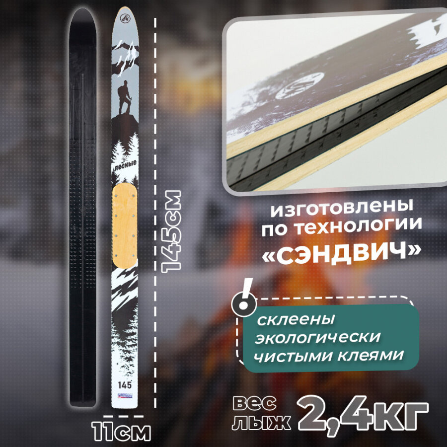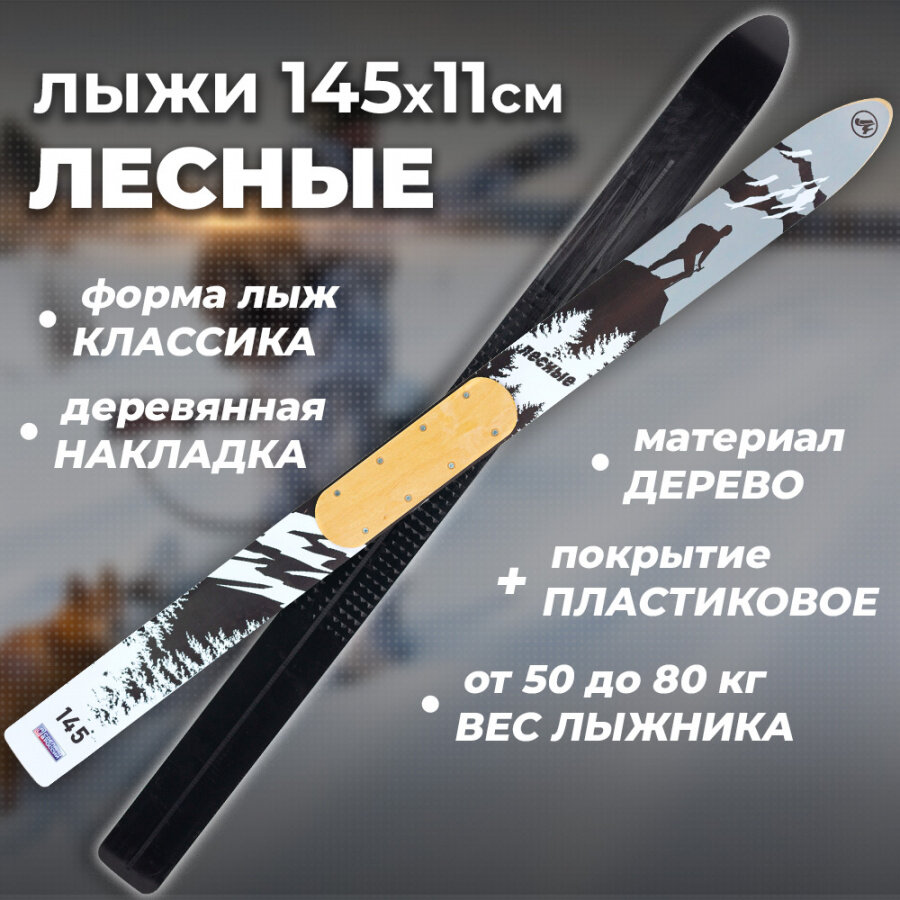 Охотничьи лыжи Маяк лесные 145х11 см, дерево-пластик + накладки, дерево