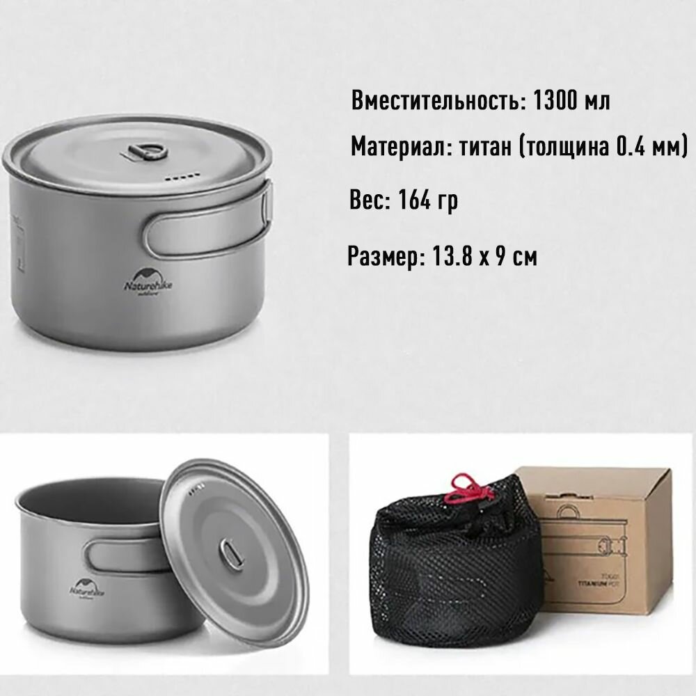 Кастрюля Naturehike Tdg02 Outdoor Ti Pot 1,3L Titanium интересное: