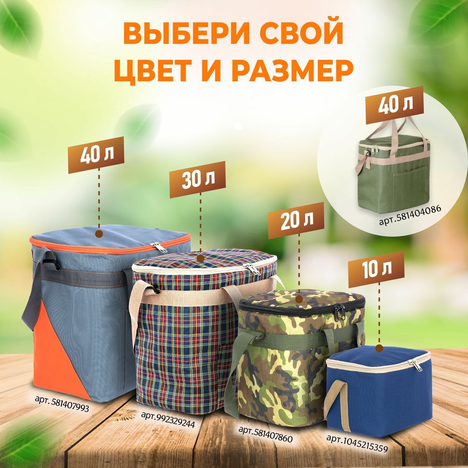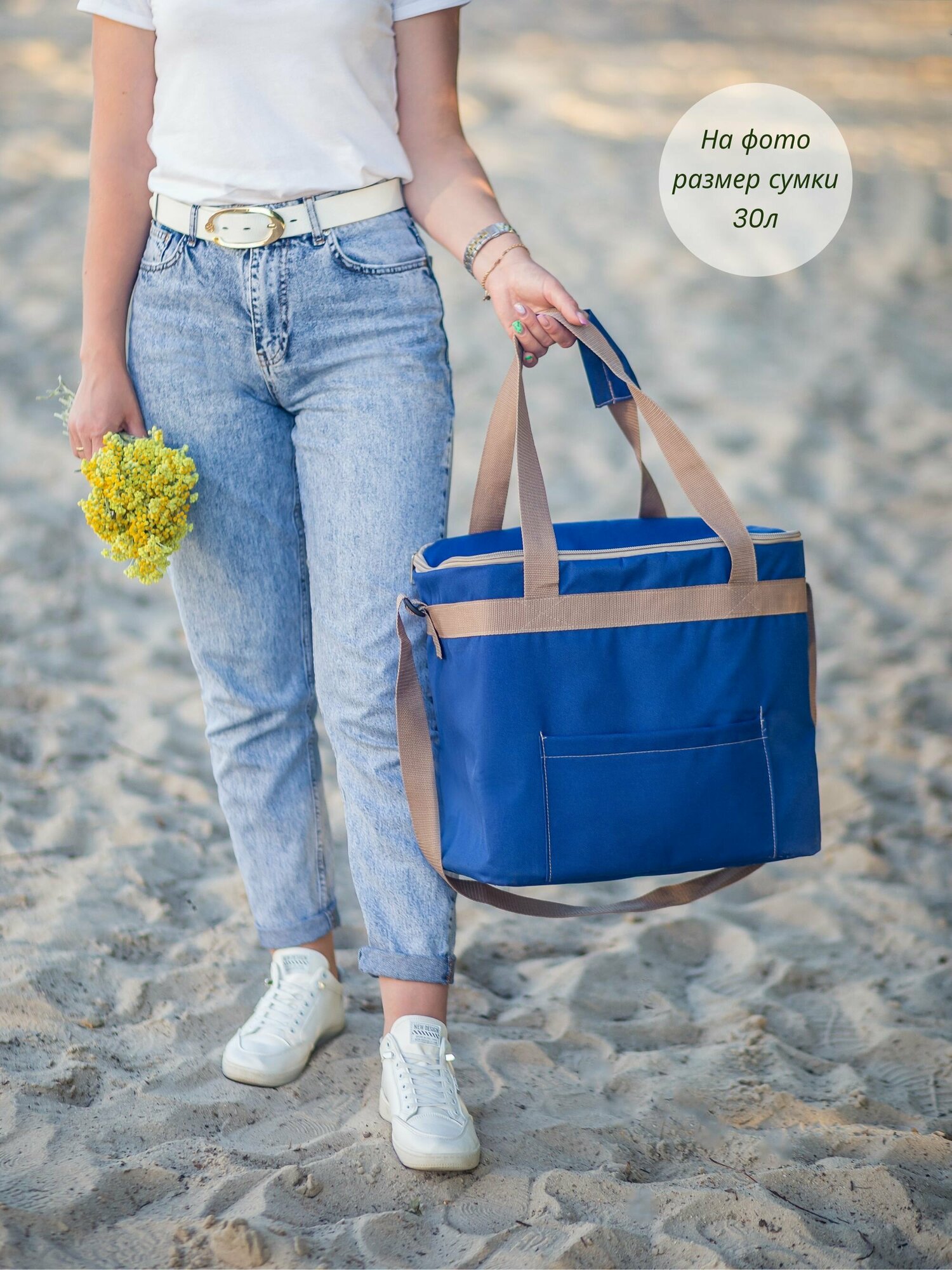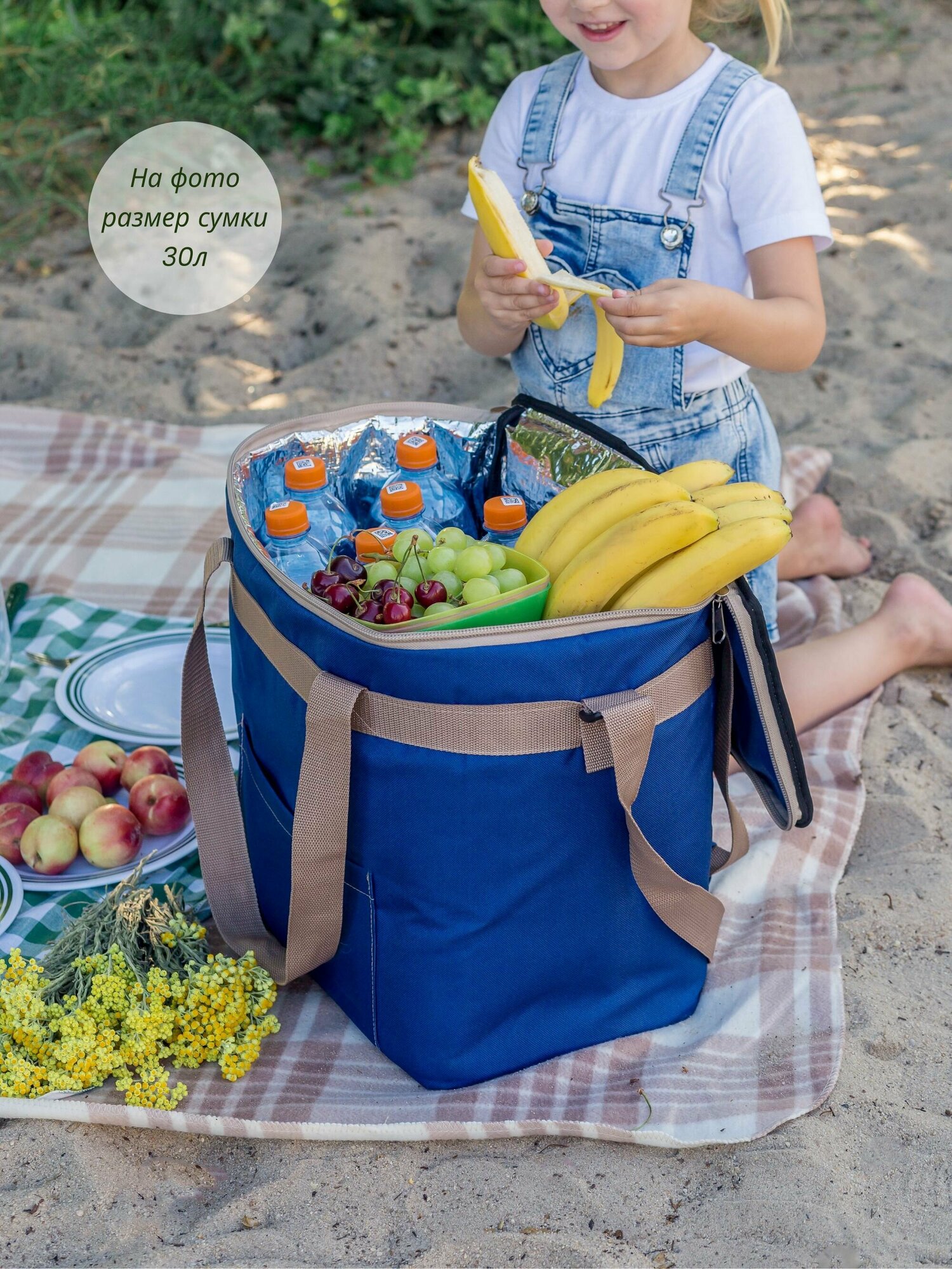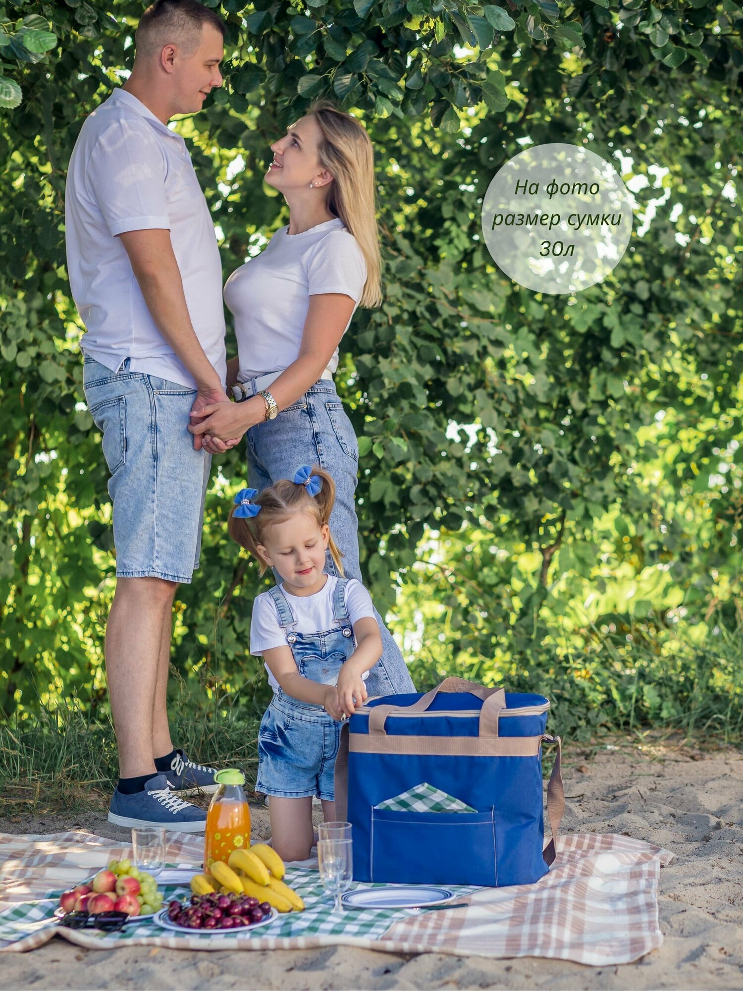 Купить Термосумка UNGAI 40 л, сумка холодильник для пикника, походов, путешествий, синий/беж