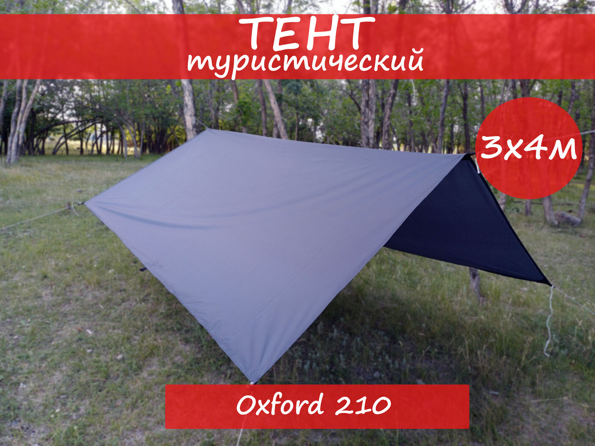 Купить Тент туристический водоупорный Оксфорд 210D темно-серый 3х4 м/ Навес/ Полог/ Укрытие