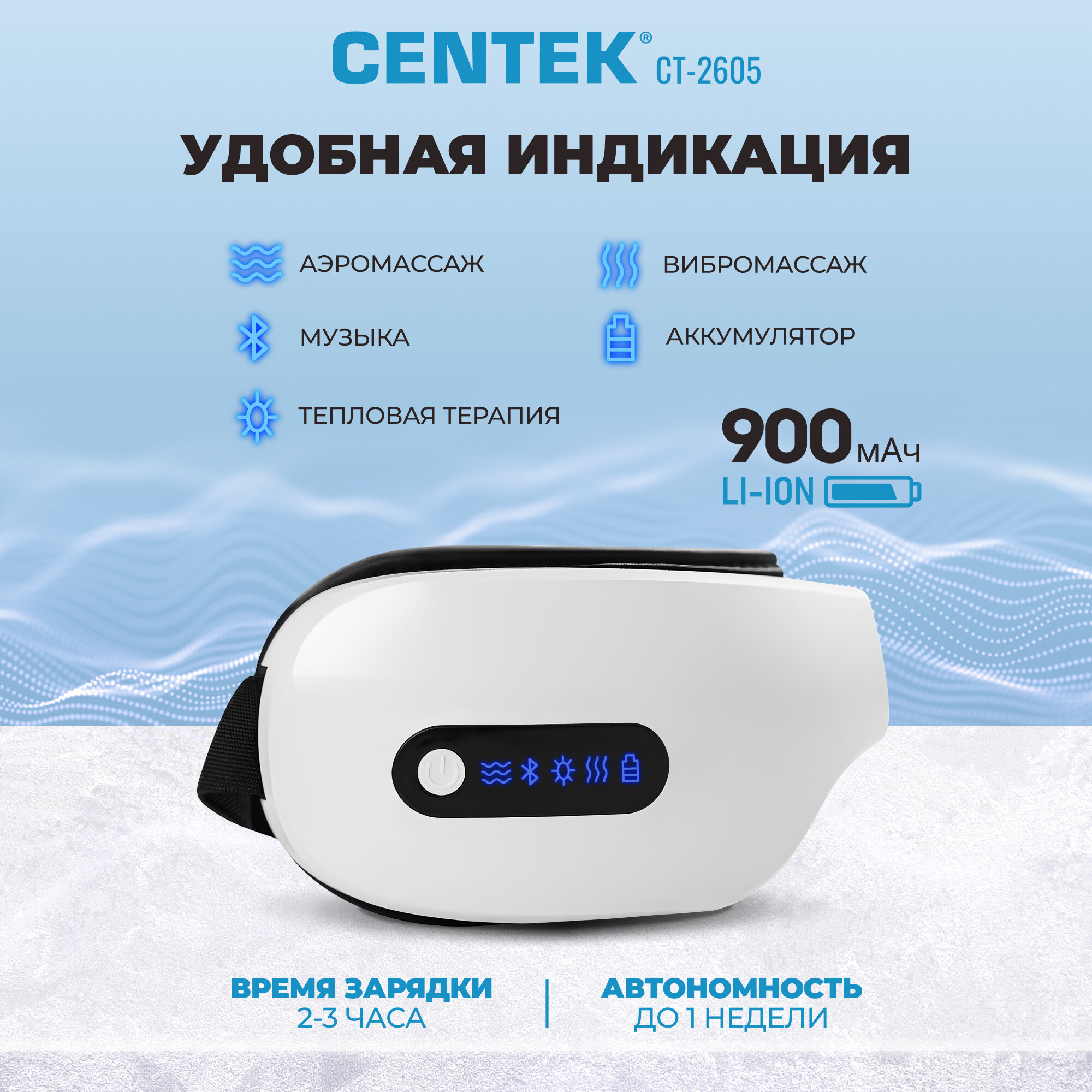 Массажер для глаз / CENTEK CT-2605 / 7 Вт / Bluetooth / Аэромассаж / Музыка