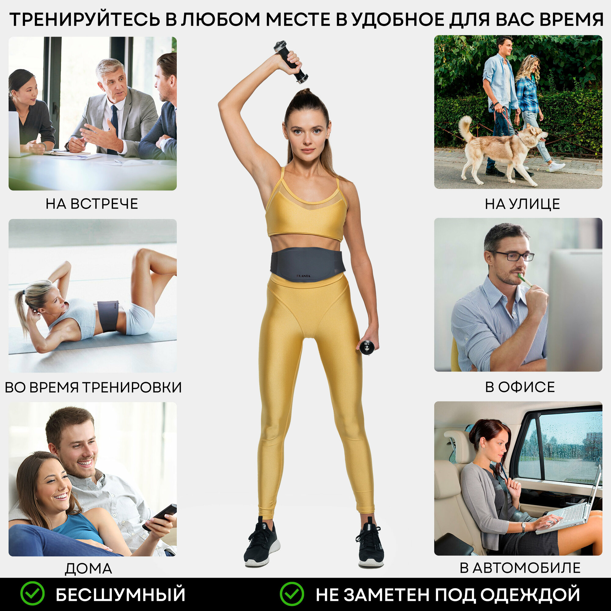Купить PLANTA Пояс-миостимулятор для пресса, тренажер мышц пресса EMS-600 с подогревом ультратонкий