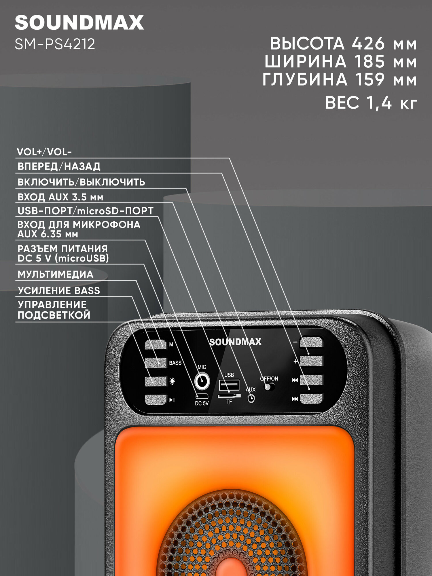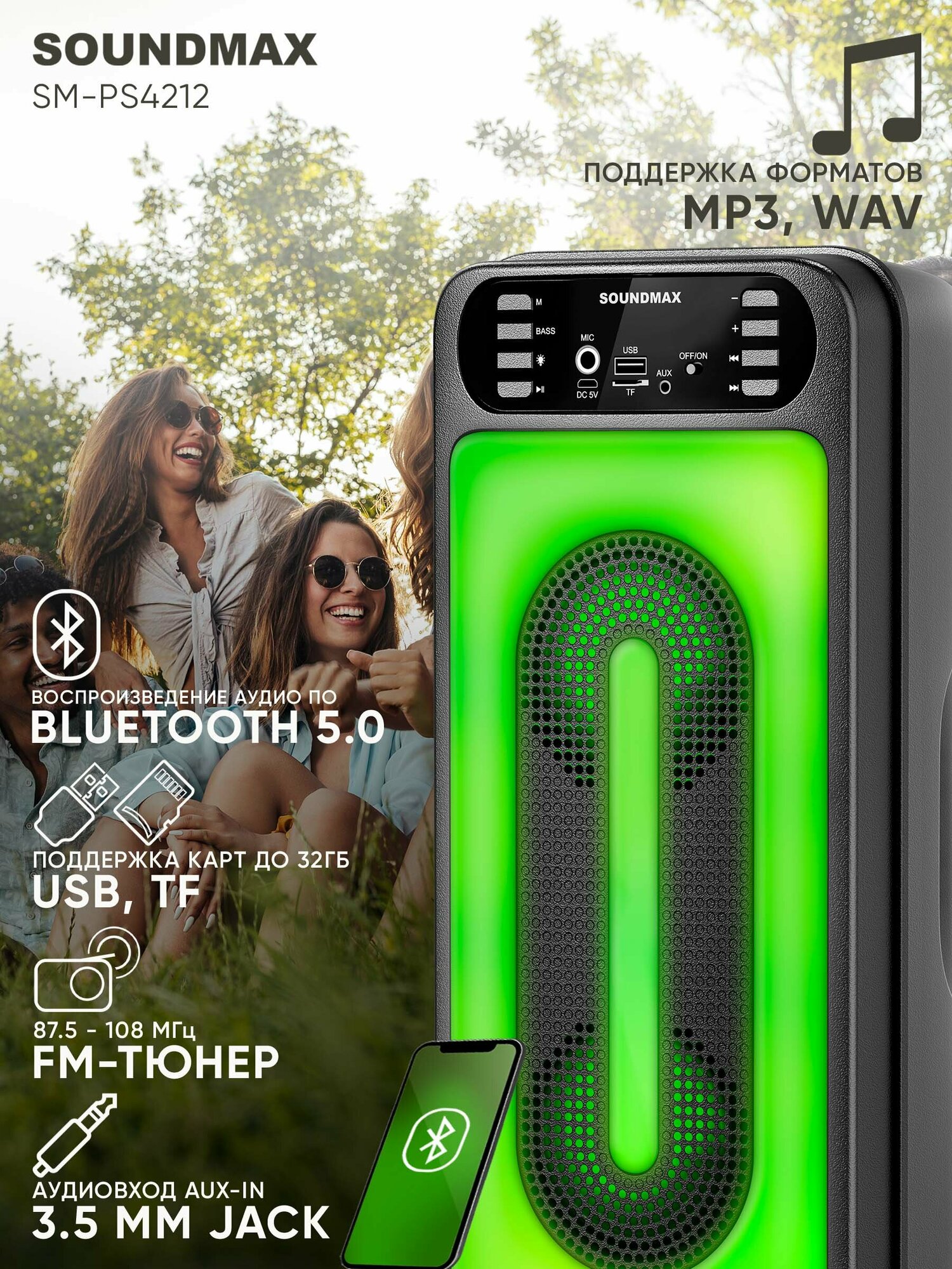 Ниже Вы можете прочитать отзывы на Портативная акустика Soundmax SM-PS4212 (чёрный) ., ознакомится с подробными характеристиками, посмотреть интересные обзоры и фотографии на Портативная акустика Soundmax SM-PS4212 (чёрный) ..