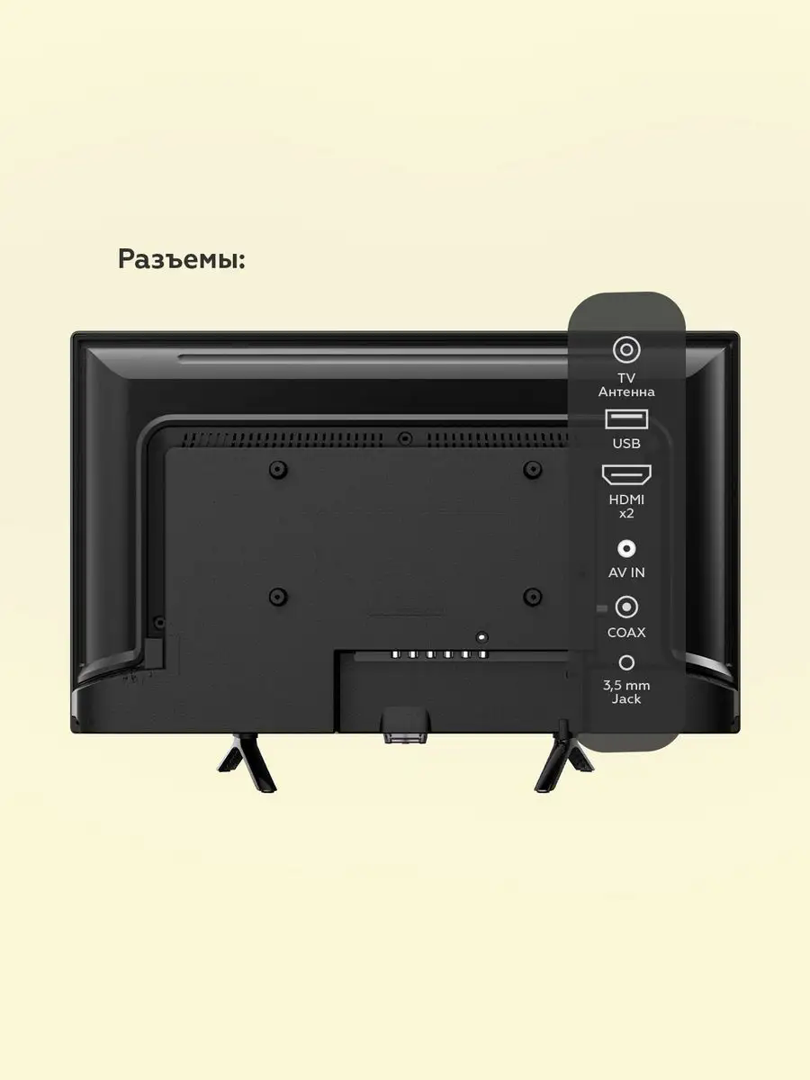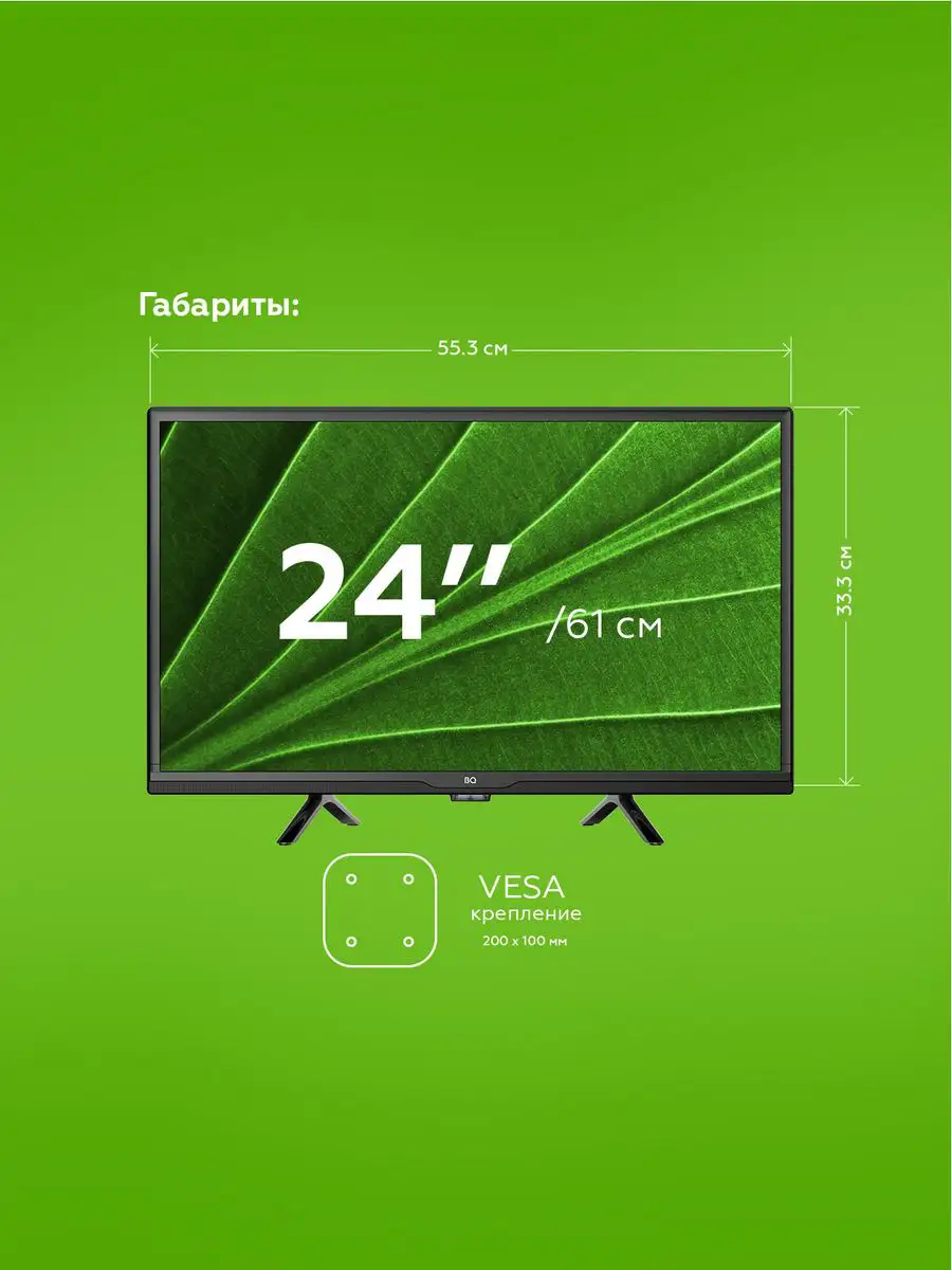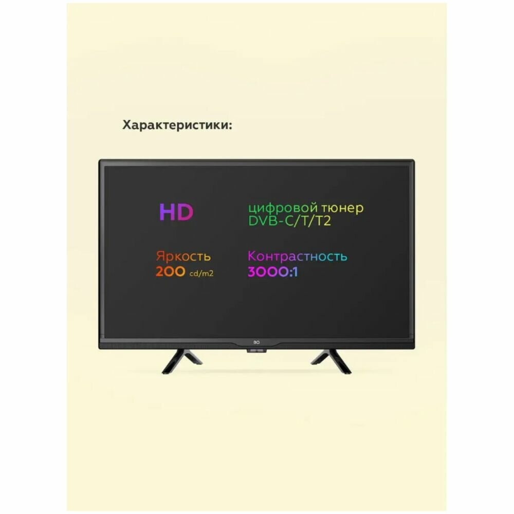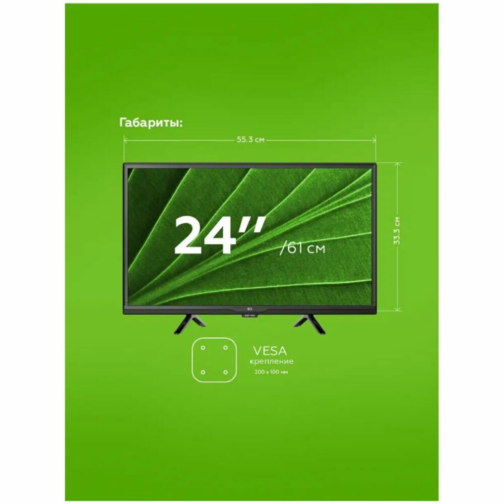 Телевизор BQ 2406B, 24", 1366x768, DVB-T2/C/S2, HDMI 2, USB 1, черный