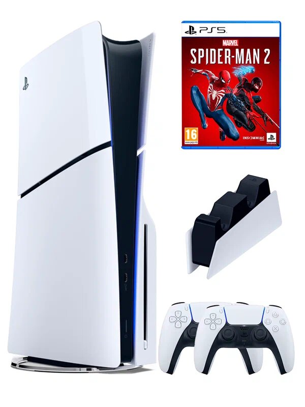 Купить PS5 (ПС5) Игровая приставка Sony PlayStation 5 Slim disc + 2-й геймпад + зарядное + игра Spider-Man2