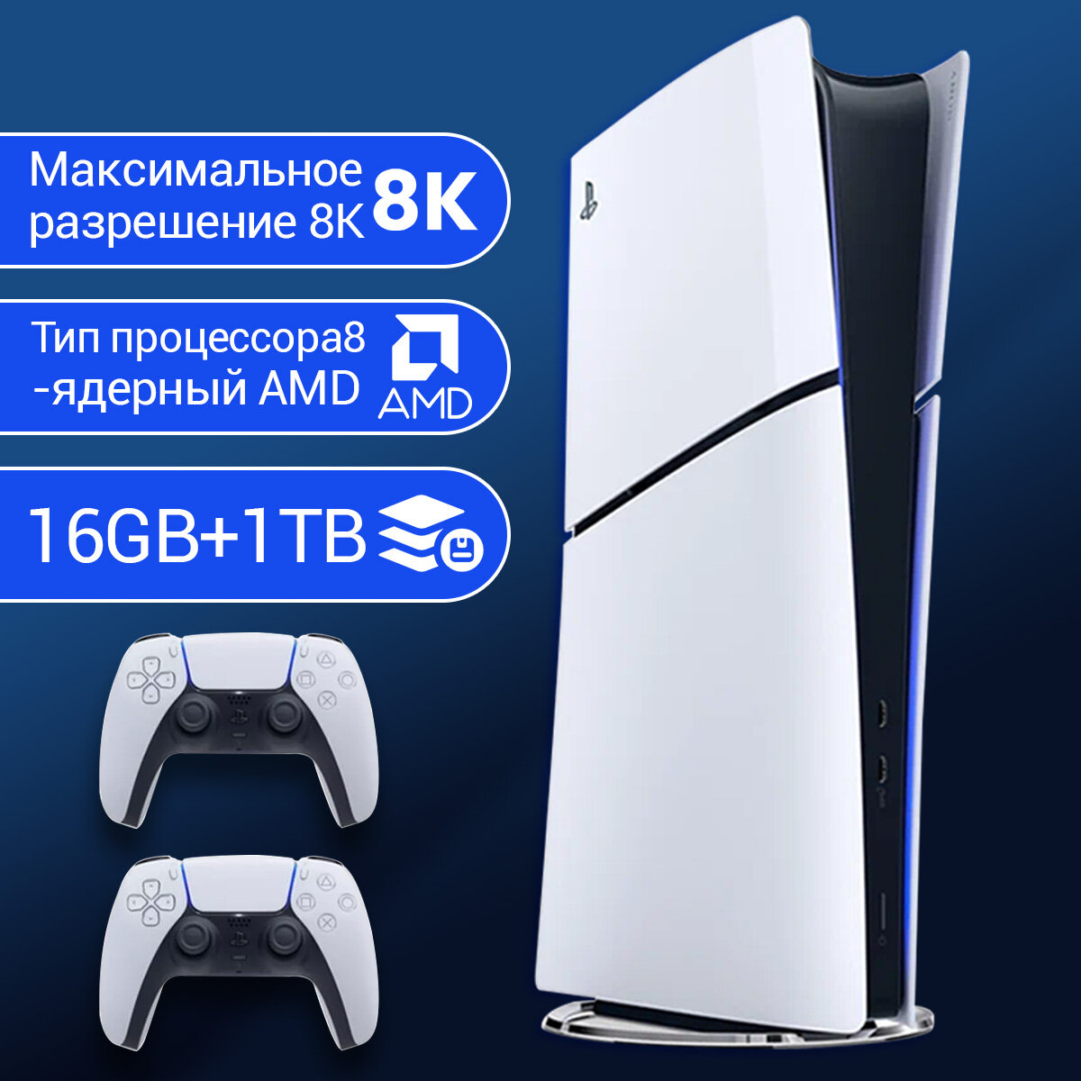 Игровая приставка Sony PlayStation 5 Slim Digital Edition, без дисковода, 1000 ГБ SSD, без игр, 2 геймпада, (Белый+звездный синий)